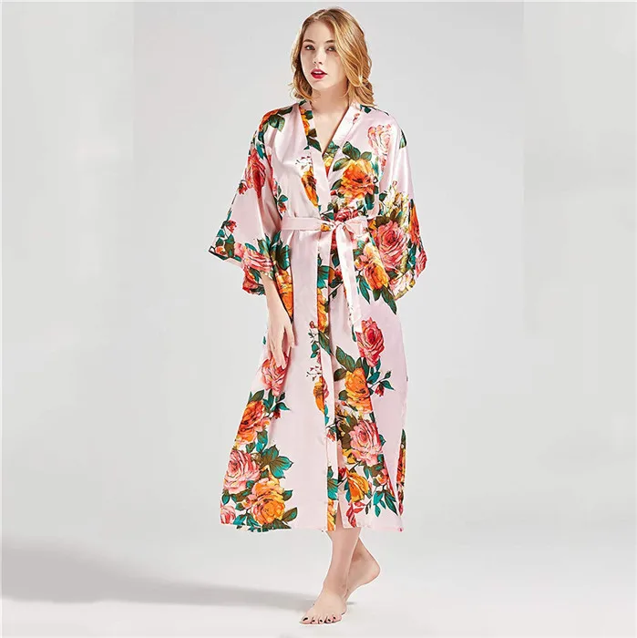 2022 розовая ночная рубашка с цветами, халат, атласная одежда для сна, халат, сексуальный длинный домашний костюм, экзотические платья, пеньюар, женское кимоно, шелковая пижама