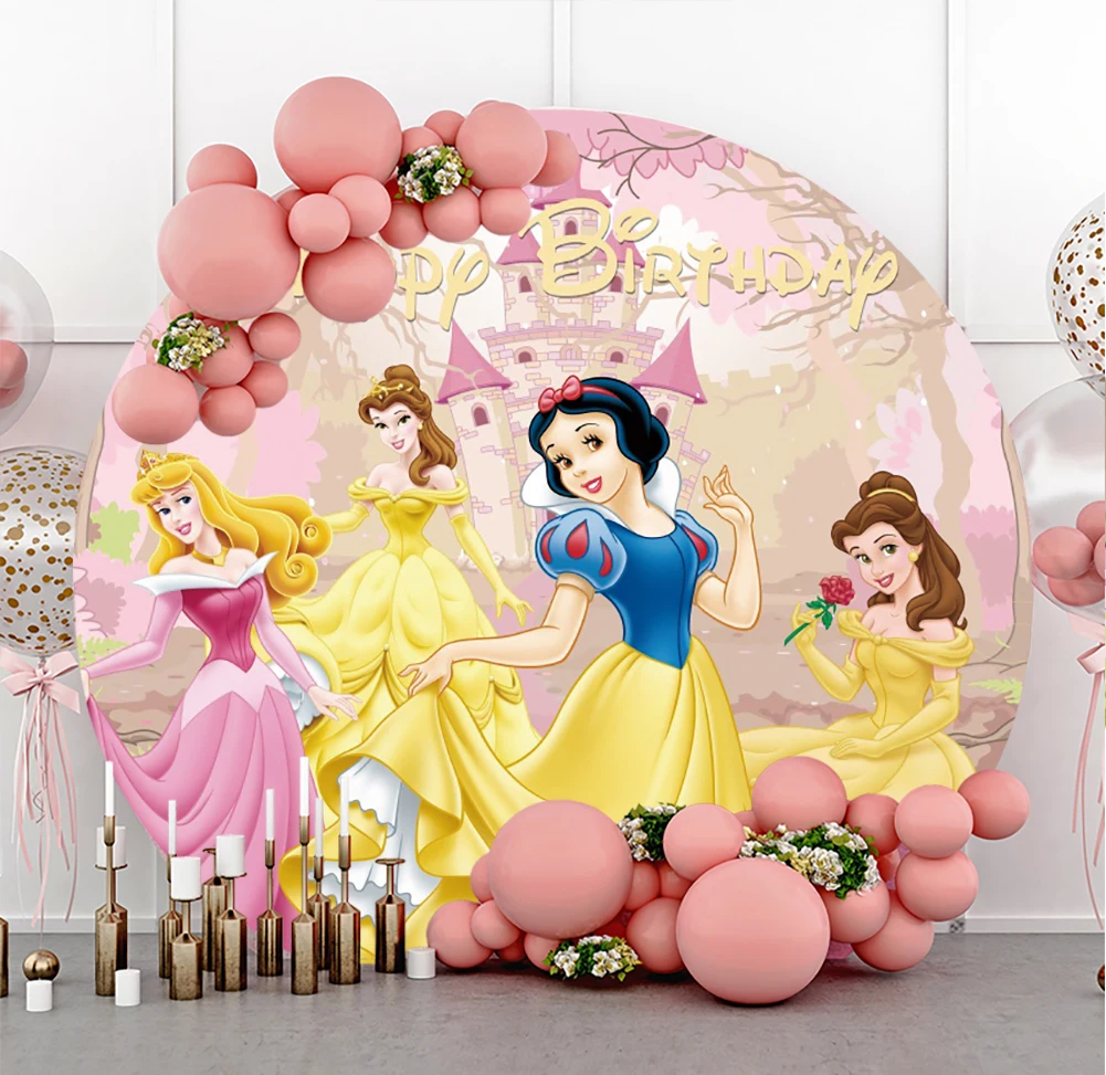 Фоны для фотографий Принцесса Диснея, Круглый баннер для фотографий, декор для вечеринки в честь Дня рождения ребенка, детские праздничные принадлежности