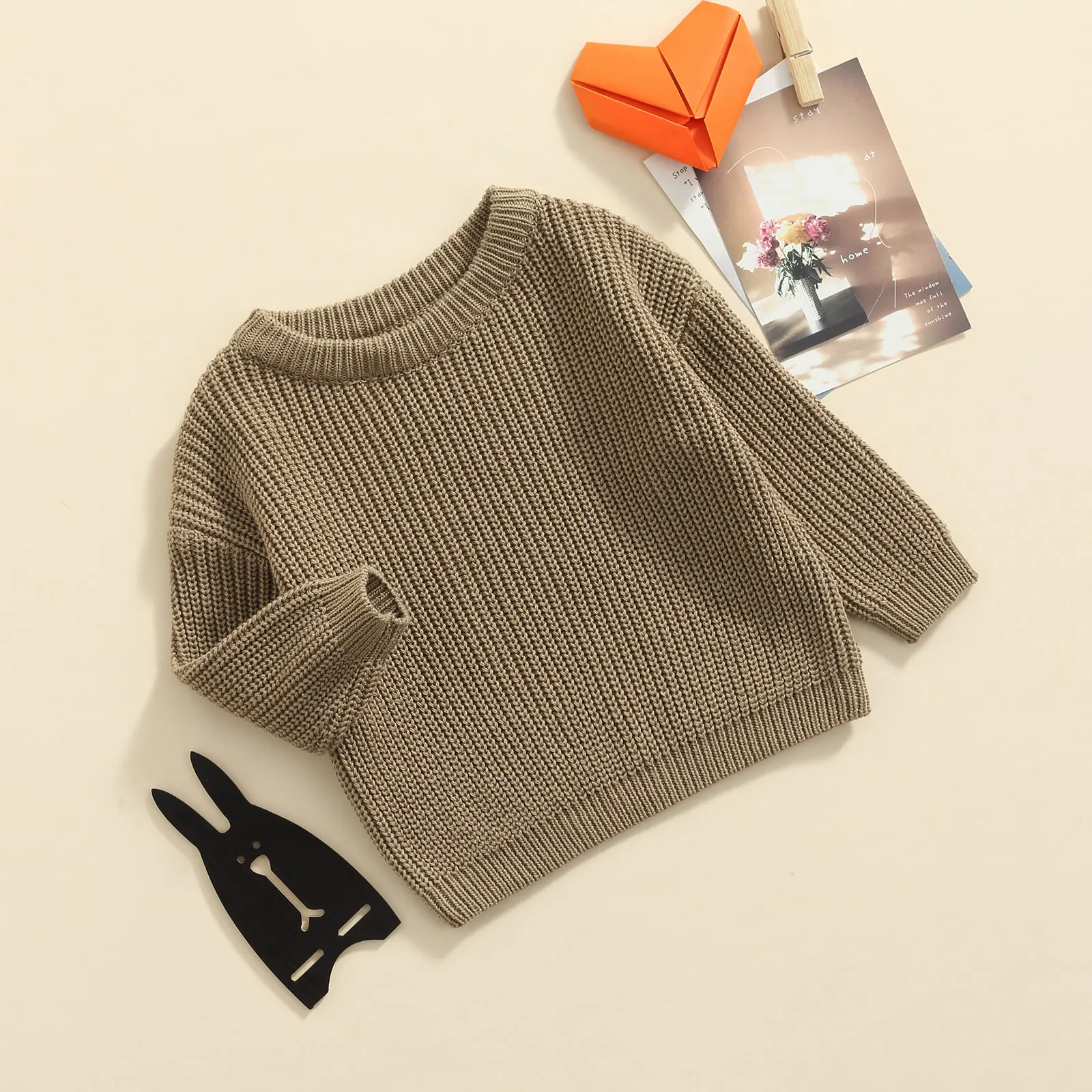Однотонные свитера для малышей, Осень-зима 2021, одежда для мальчиков и девочек, пуловер с длинным рукавом, вязаные топы, Повседневный свитер для малышей 3-9 месяцев
