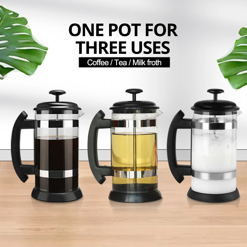Кофейник с французским прессом, чайник для кофечая, чайник 1000 мл, стеклянный термос из нержавеющей стали для кофе, посуда для напитков