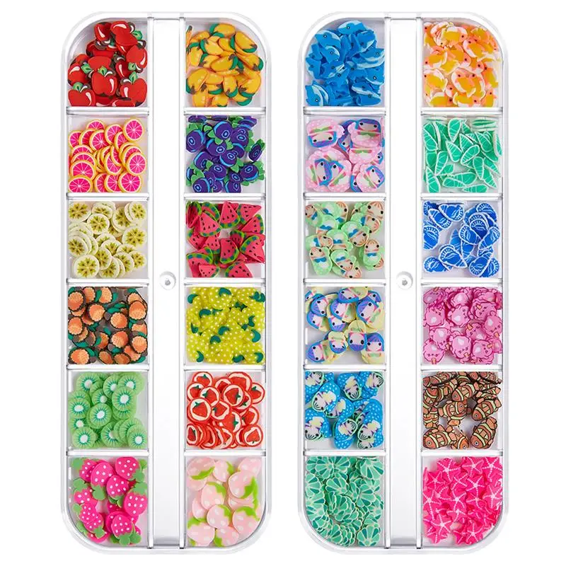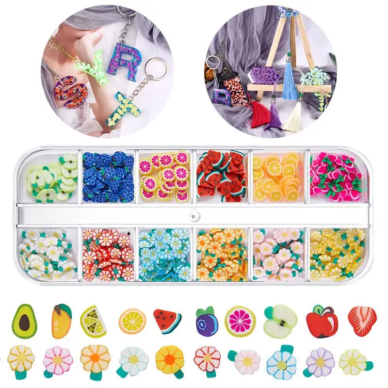 1 коробка, глина, наполнитель из смолы, фруктовые цветы, узор, разноцветный смешанный наполнитель для DIY, эпоксидная смола, форма для изготовления ювелирных изделий, украшение для дизайна ногтейМатериал: мягкая глинаСпецификация: смешанные цвета 12 сетокУпаковочный лист1 коробка