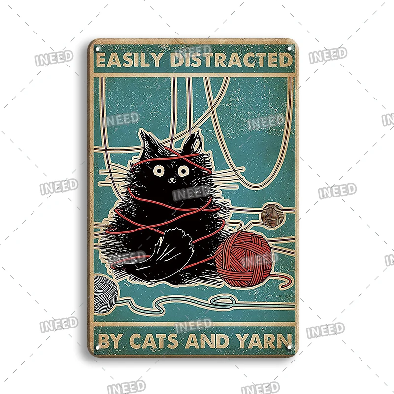 Винтажная живопись кошки, металлическая пластина, жестяная вывеска,...