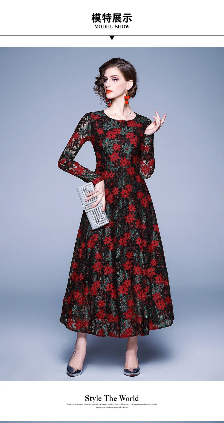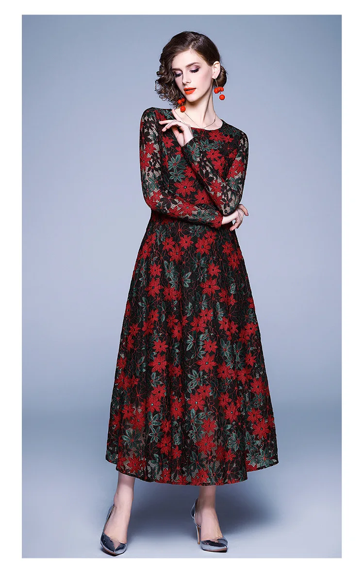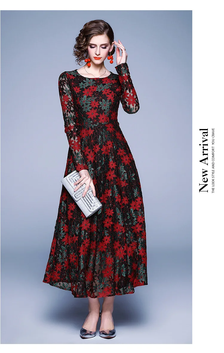 Винтажные кружевные платья средней длины с круглым вырезом и длинным рукавом для матери невесты, модные элегантные платья для выпускного вечера с цветочным принтом