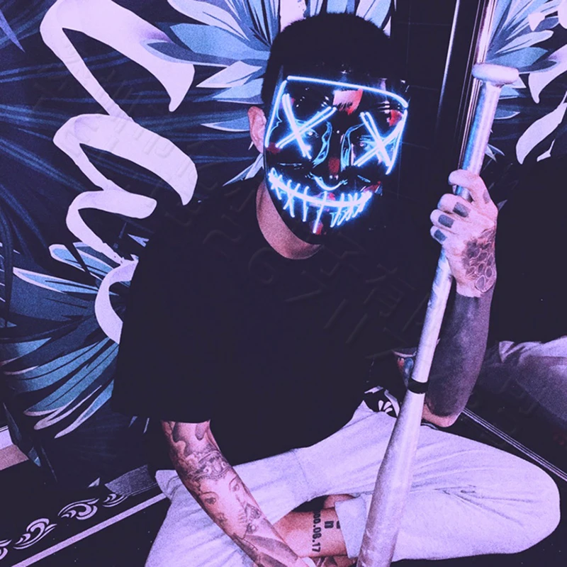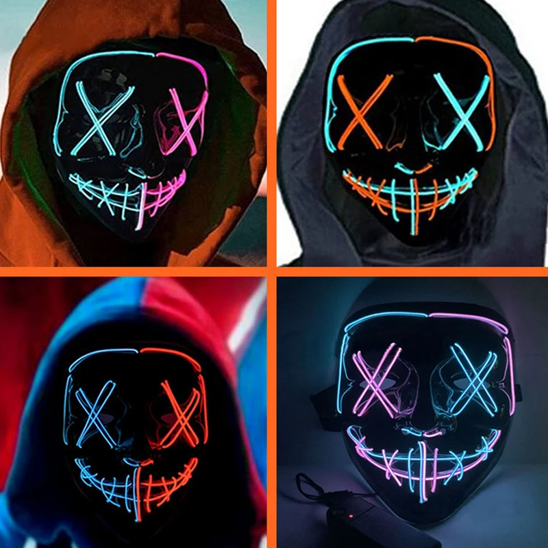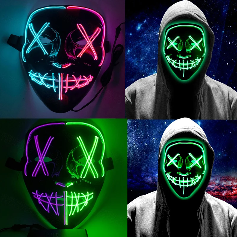 Маски для хэллоуивечерние, неоновые ночные светящиеся светодиодные светящиеся Клубные, праздничные, косплей, Хэллоуин, светящиеся страшные светильники