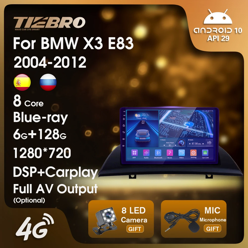Автомагнитола TIEBRO для BMW X3 E83 2004-2012, 2 Din, Android, Автомобильная Мультимедийная навигация, GPS-трек для Carplay, 2 Din, DVD-плееры для Carplay