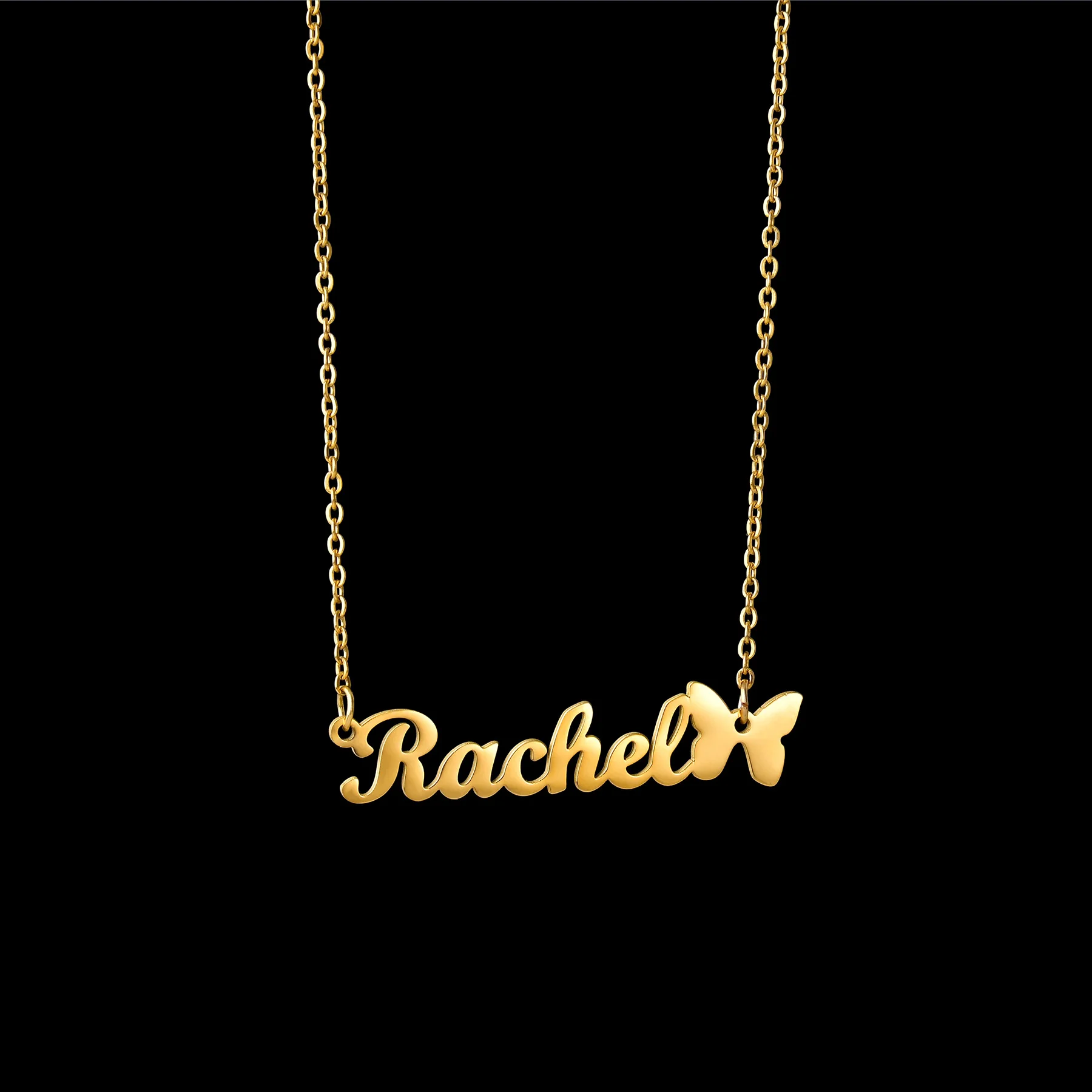 Ожерелье женское из нержавеющей стали с золотыми буквами и бабочками