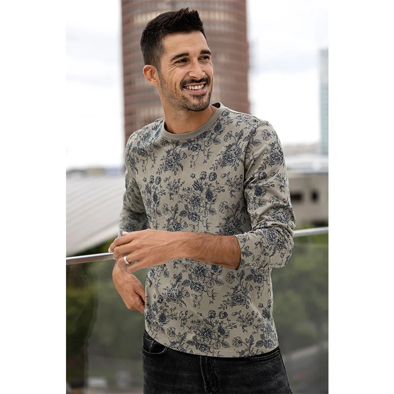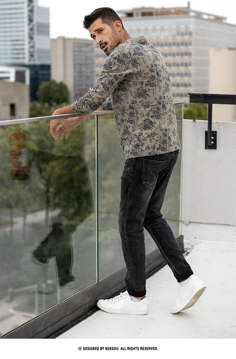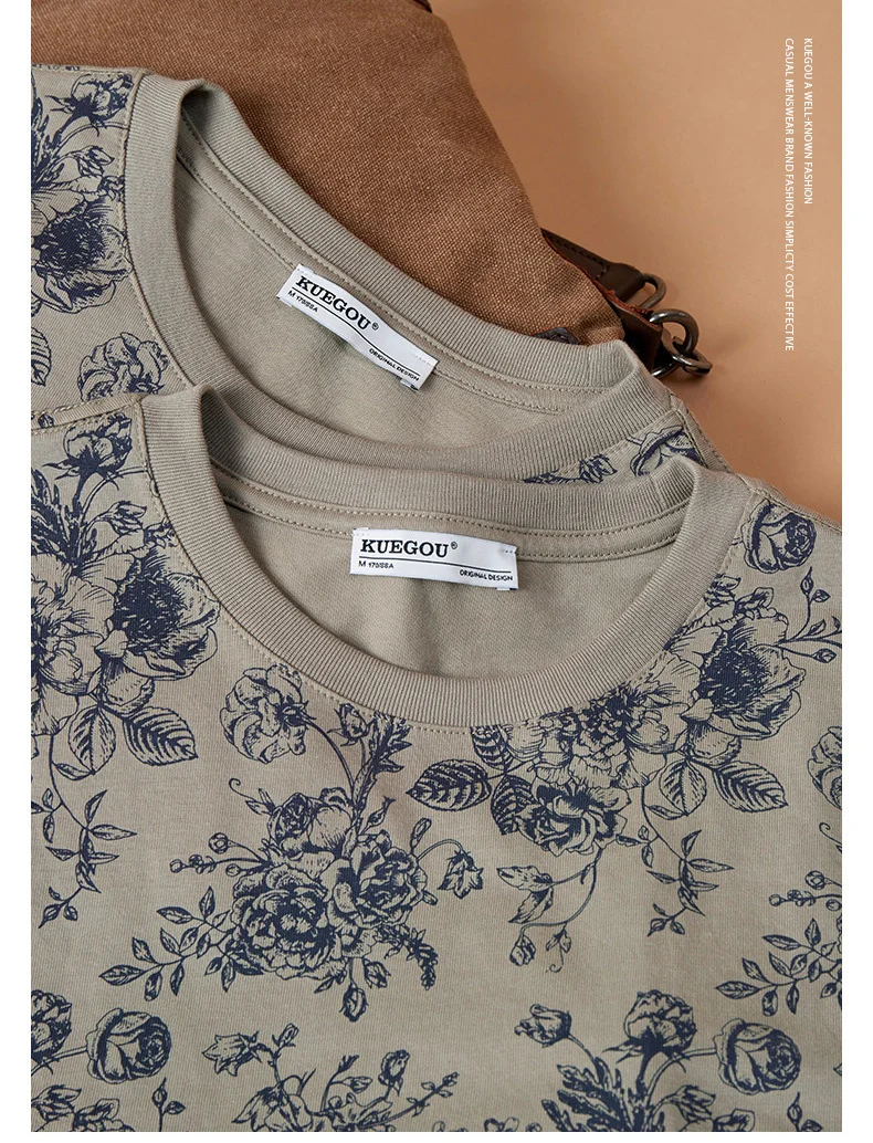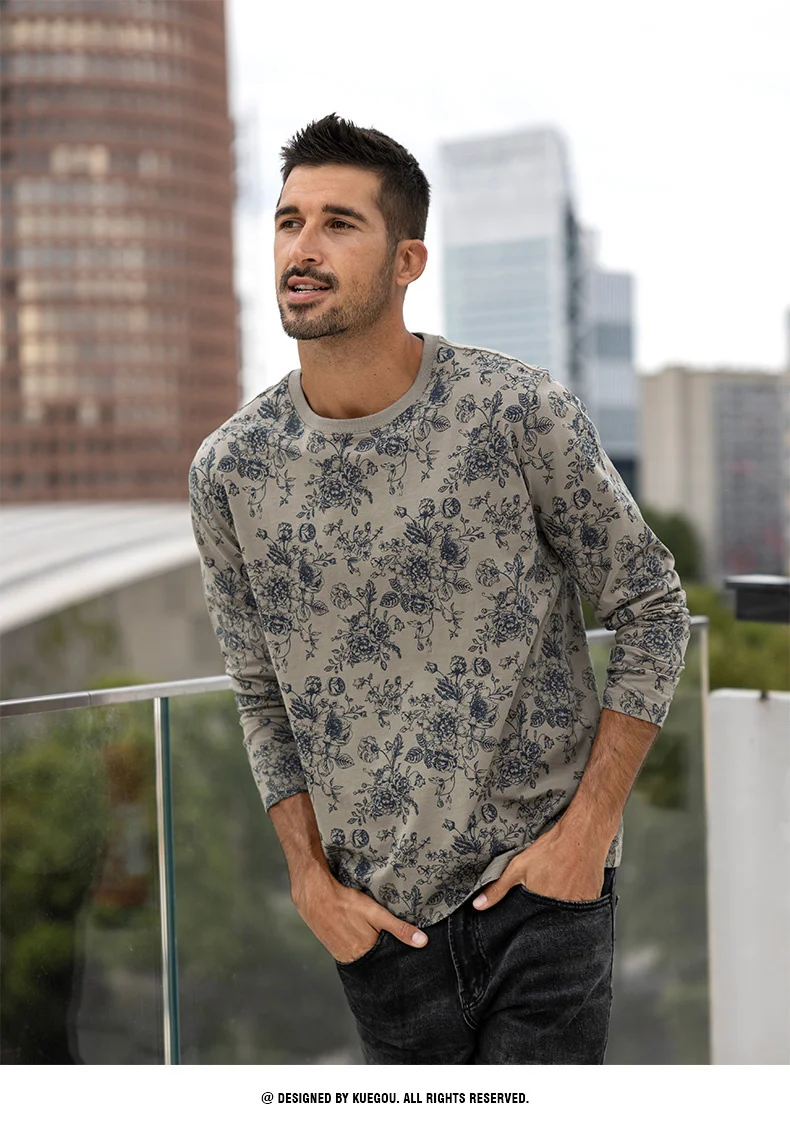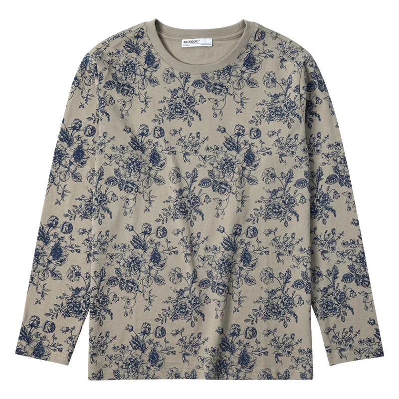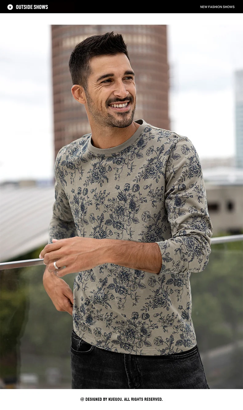 KUEGOU 2021 Осенняя футболка из 100% хлопка с принтом цвета хаки мужская Тонкая футболка брендовая футболка с длинными рукавами Мужская одежда футболки размера плюс 60015