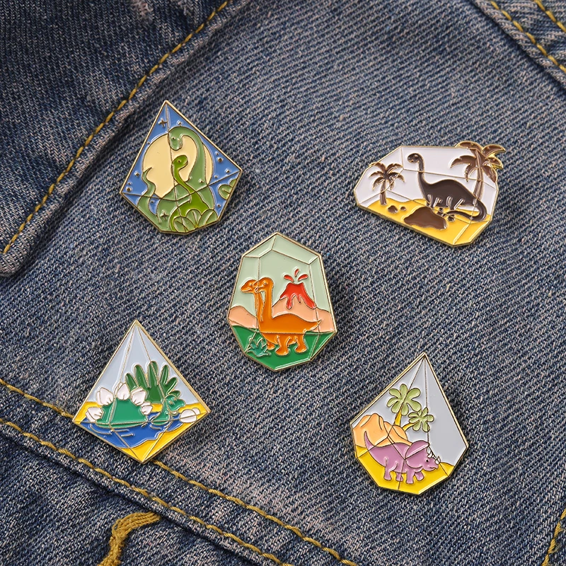 Броши на лацкан с эмалью в виде динозавра, планеты, сердца, оригами, 4-5 шт.компл., значок-булавка на подарок, аксессуары для друга