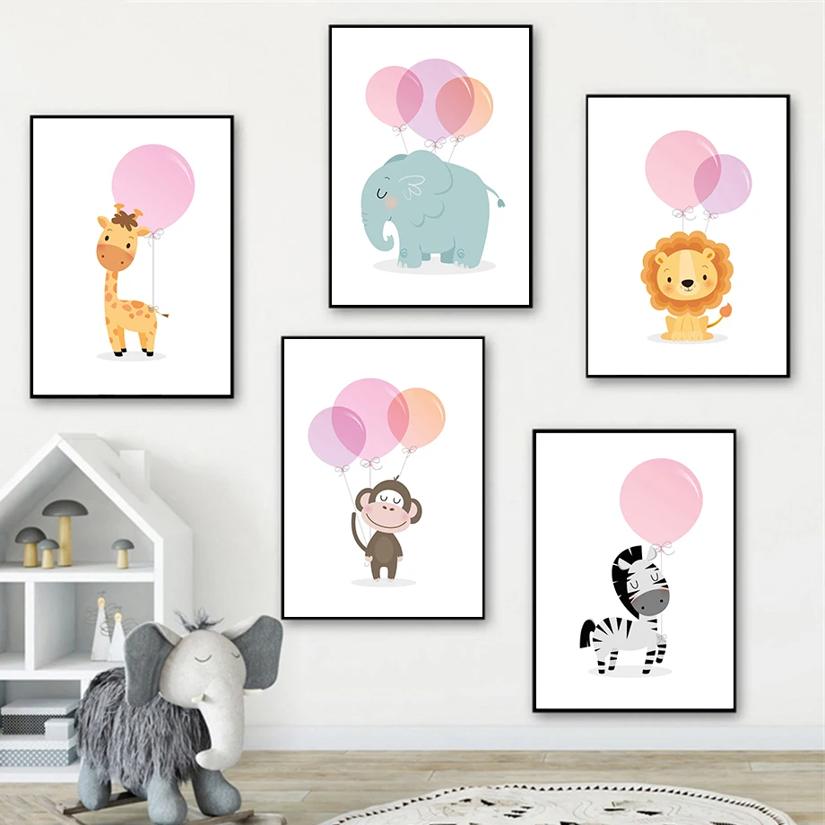 Мультяшная обезьяна жираф лев тигр шарик-Зебра настенная живопись на холсте скандинавские плакаты и принты настенные картины декор детской комнаты