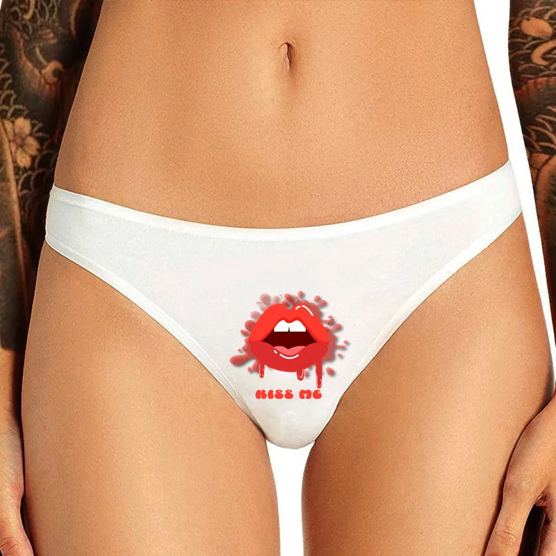 Трусы женские с забавным принтом KISS ME, пикантное женское нижнее ...