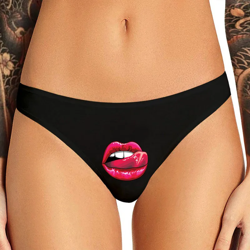 Сексуальные женские трусики с забавными красными губами MAKE ME, ни...