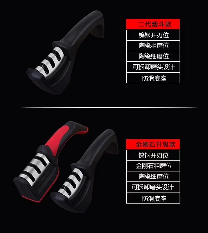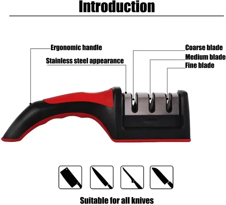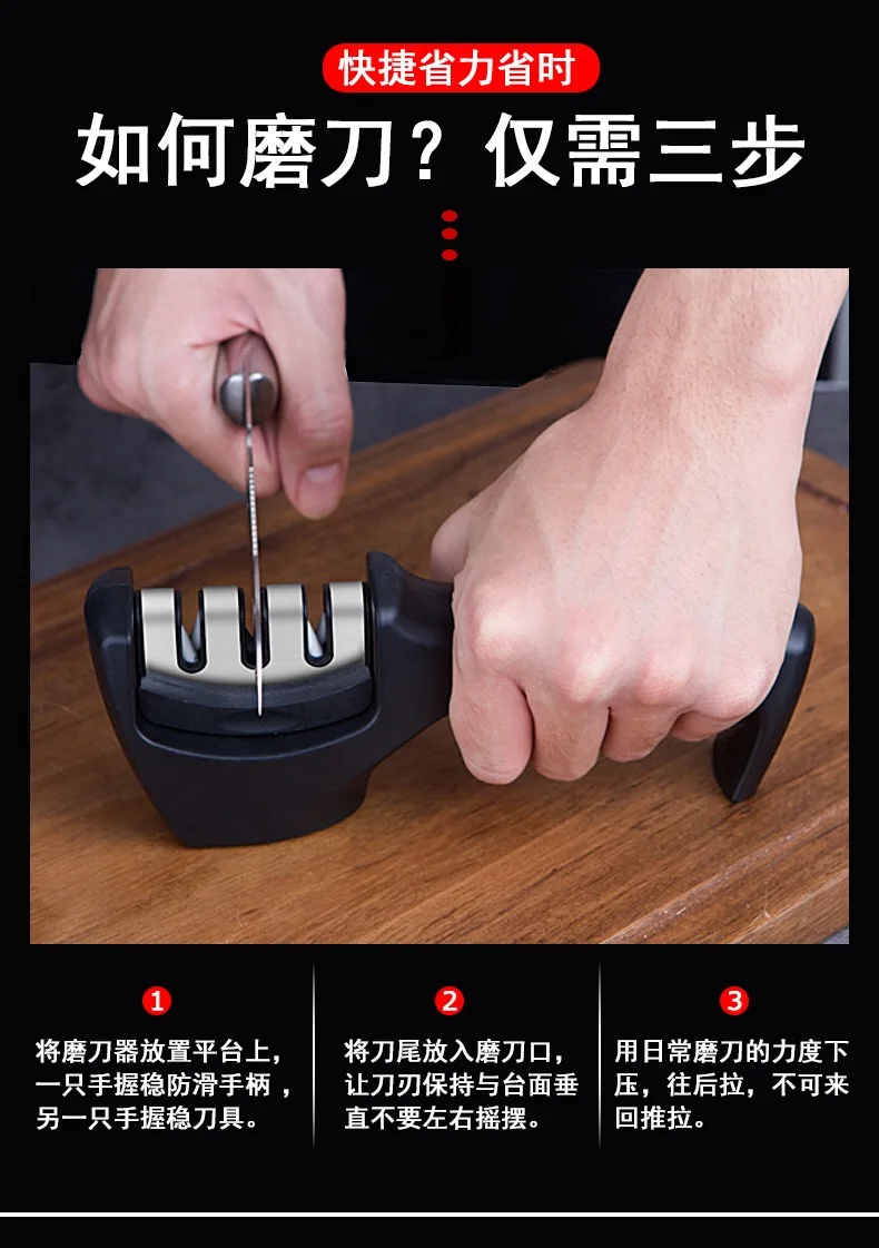 3-этапная точилка для ножей, алмазная Керамическая точилка для стержней, точильный инструмент, лезвие из нержавеющей стали с нескользящей основой