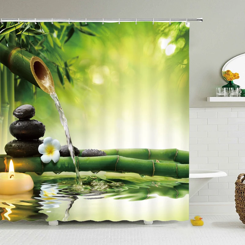 Бамбуковая занавеска для душа с зелеными растениями, занавеска для ...