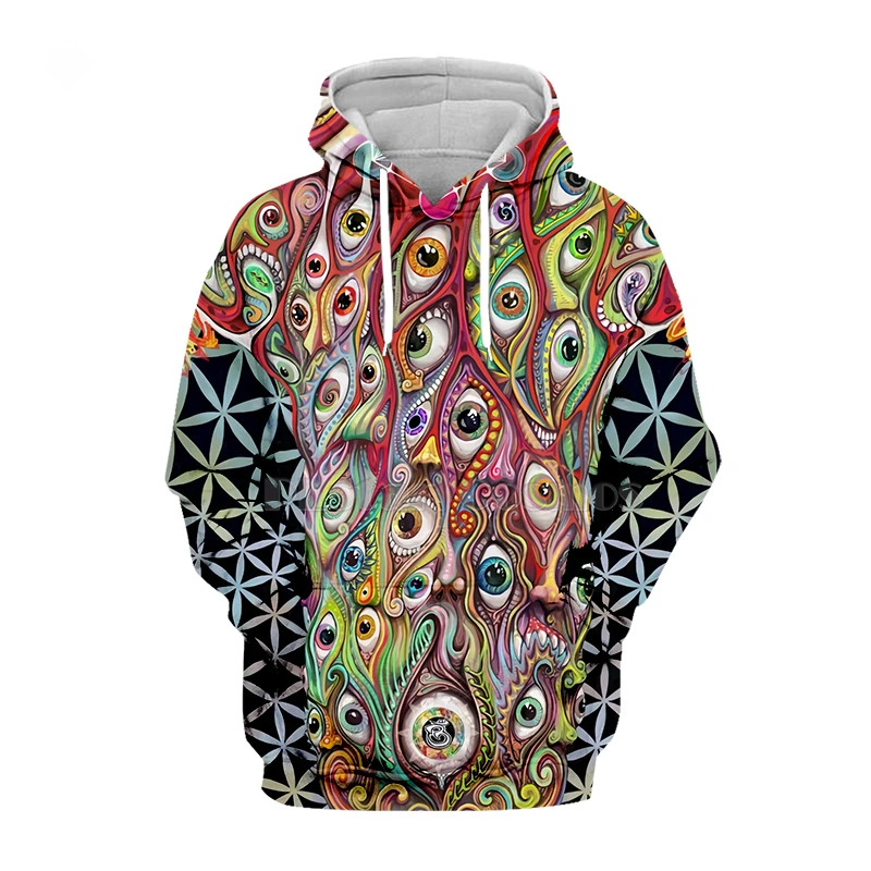 Толстовка мужская с капюшоном и длинным рукавом, худи в стиле хиппи, мандала, Триппи, абстрактный Психоделический глаз, 3d, уличная одежда, зима-осень