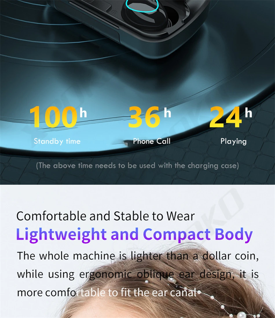Беспроводная гарнитура TWS Bluetooth 5,1 Спортивная гарнитура сенсорная Водонепроницаемая гарнитура