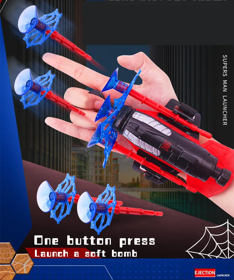 Дети могут представить себя любимыми онлайн супергероями.На верхней части снаряда находится присоска, которая не подходит для человеческого тела.Пусковая установка супергероя приносит детям крутой мир детства.Это может увеличить взаимодействие детей и сделать детей счастливыми.Стимулирует детское украшение героев.Описание:Материал: пластикМетод управления: Контроль силыРазмеры: 15*7,5 смУпаковочный лист1 * Handguard3 * Дротика на присоске1 * перчатки