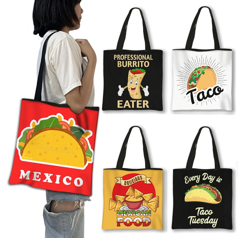 Забавная мексиканская Сумка на плечо с принтом тако, женские сумки с милым котом, повседневная сумка для покупок для девочек, вместительные сумки для покупок, подарок