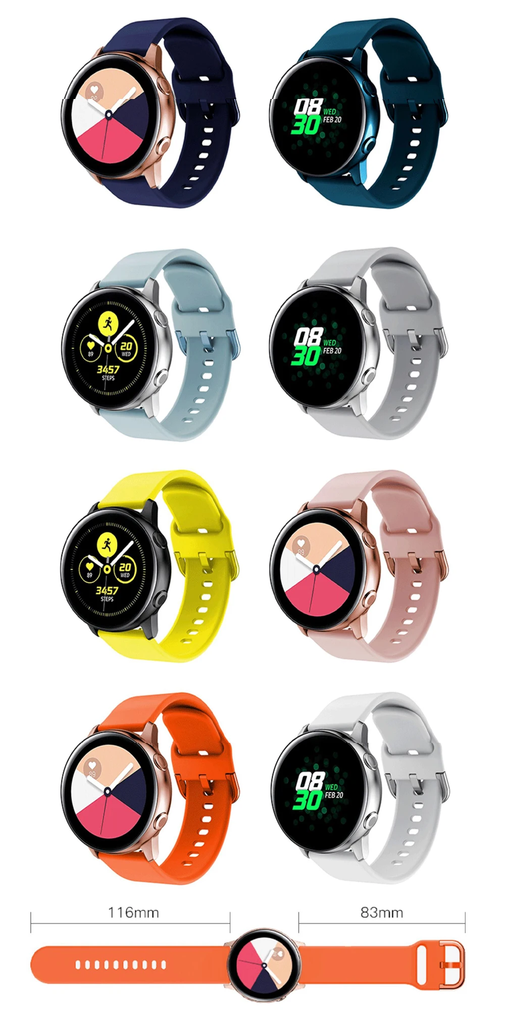Силиконовый ремешок для часов Samsung Galaxy Watch 3, 41, 45, 42, 2, спортивный браслет для Amazfit Bip, huawei Watch, 2P, ремешок для часов