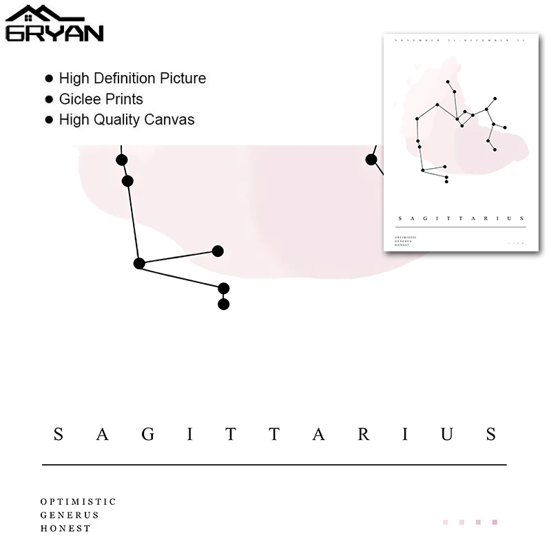 Созвездия, знак зодиака, холст, печать, живопись, астрология, цитата, детская комната, постер, знаки зодиака, миф, картина, декор