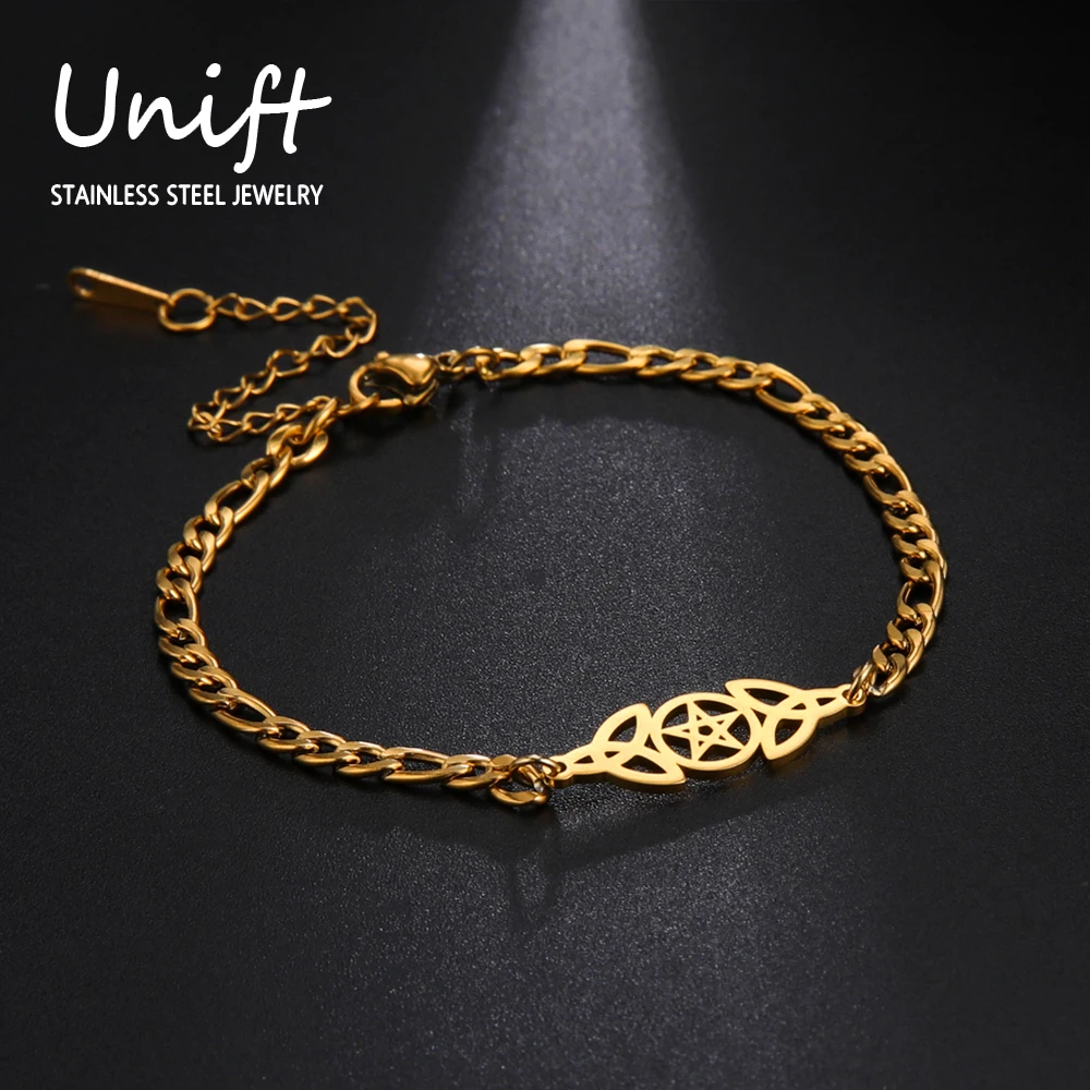 Unift Браслет с кельтским узлом ведьма узел пентаграмма браслет с пентаграммой Викка амулет винтажные украшения из нержавеющей стали для женщины-викинга