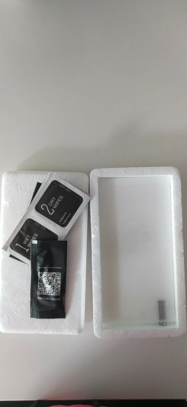 3 закаленных стеклянные крышки прибыли, 3 чистящие салфетки и 3 наполнителя. Все хорошо защищено в белой коробке isopor. Очень доволен покупкой, она отлично смотрелась на моем телефоне, как я и хотел. Он прибыл ровно через 10 дней с момента заказа в комбинированной доставке. Мне не нужно было связываться с продавцом. Would Definitely buy Again from This Store. Приходит также учебник о том, как его поставить, но он на китайском языке, и к сожалению, я не мог понять это, но это тоже не сложно.