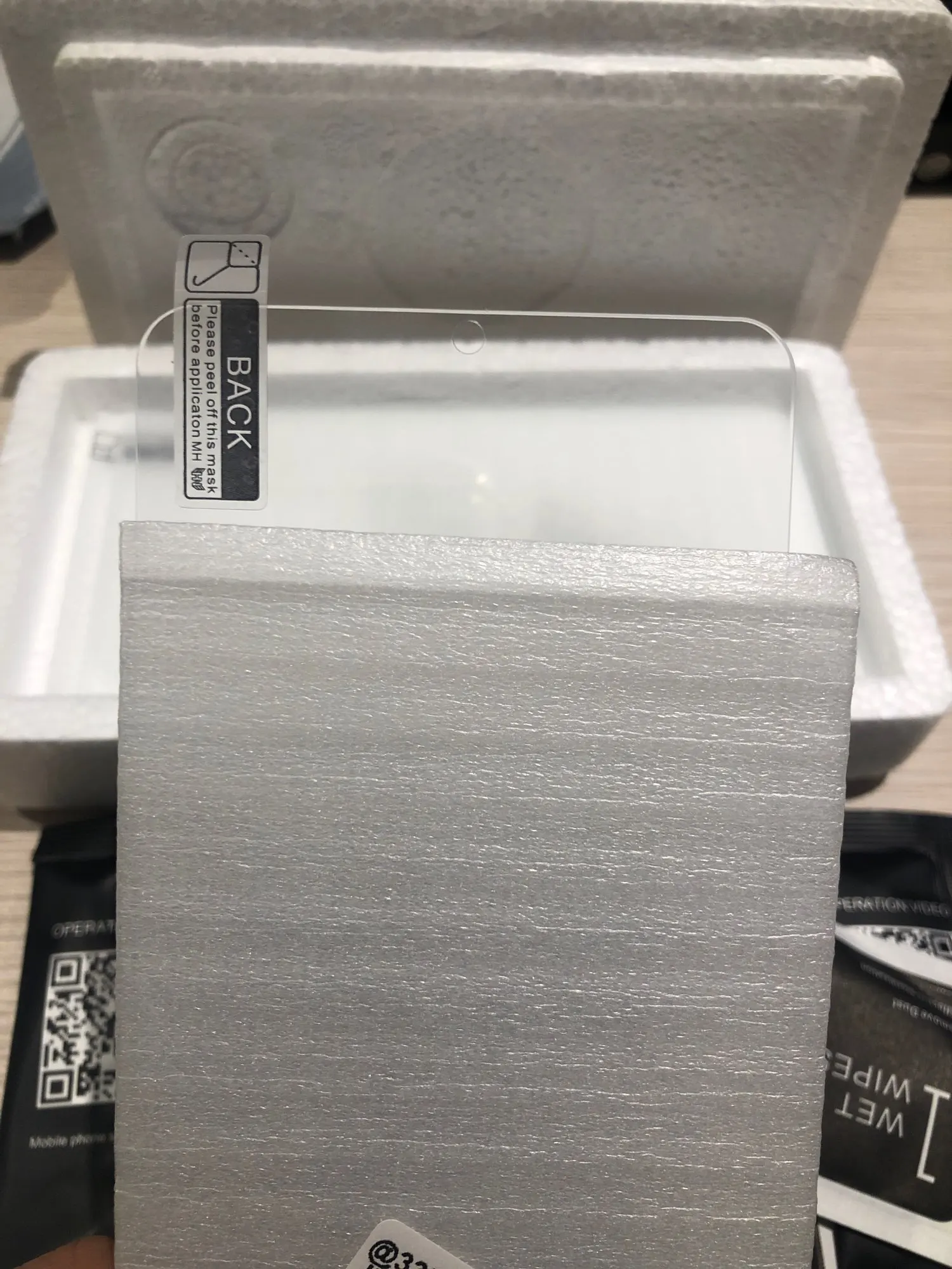 В дополнение к 3 защитным чехлам, поставляются 2 мини-крючка для подготовки экрана и мини-Пипетка с жидкостью, а также для очистки экрана. Они приходят в пробковой коробке, чтобы убедиться, что они прибывают в хорошем состоянии.