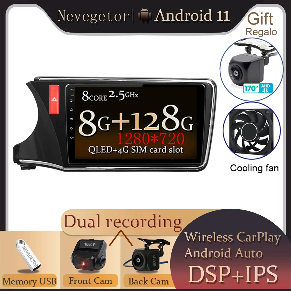 Стереомагнитола 1DIN на Android 11 для HONDA CITY 2014 2018, 10 дюймов