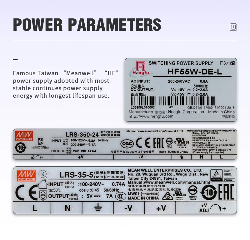 Известный тайваньский источник питания «Meanwell» «HF» с наиболее стабильным непрерывным источником энергии с длительным сроком службы.