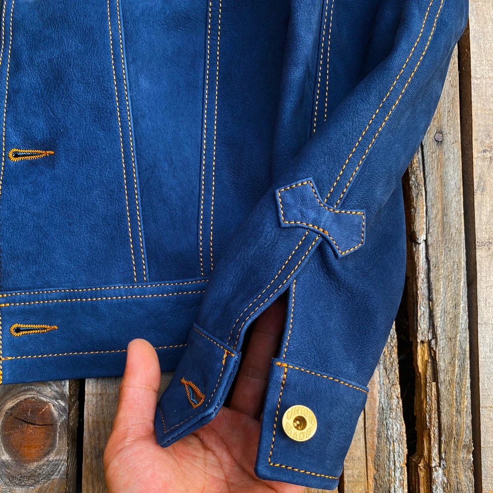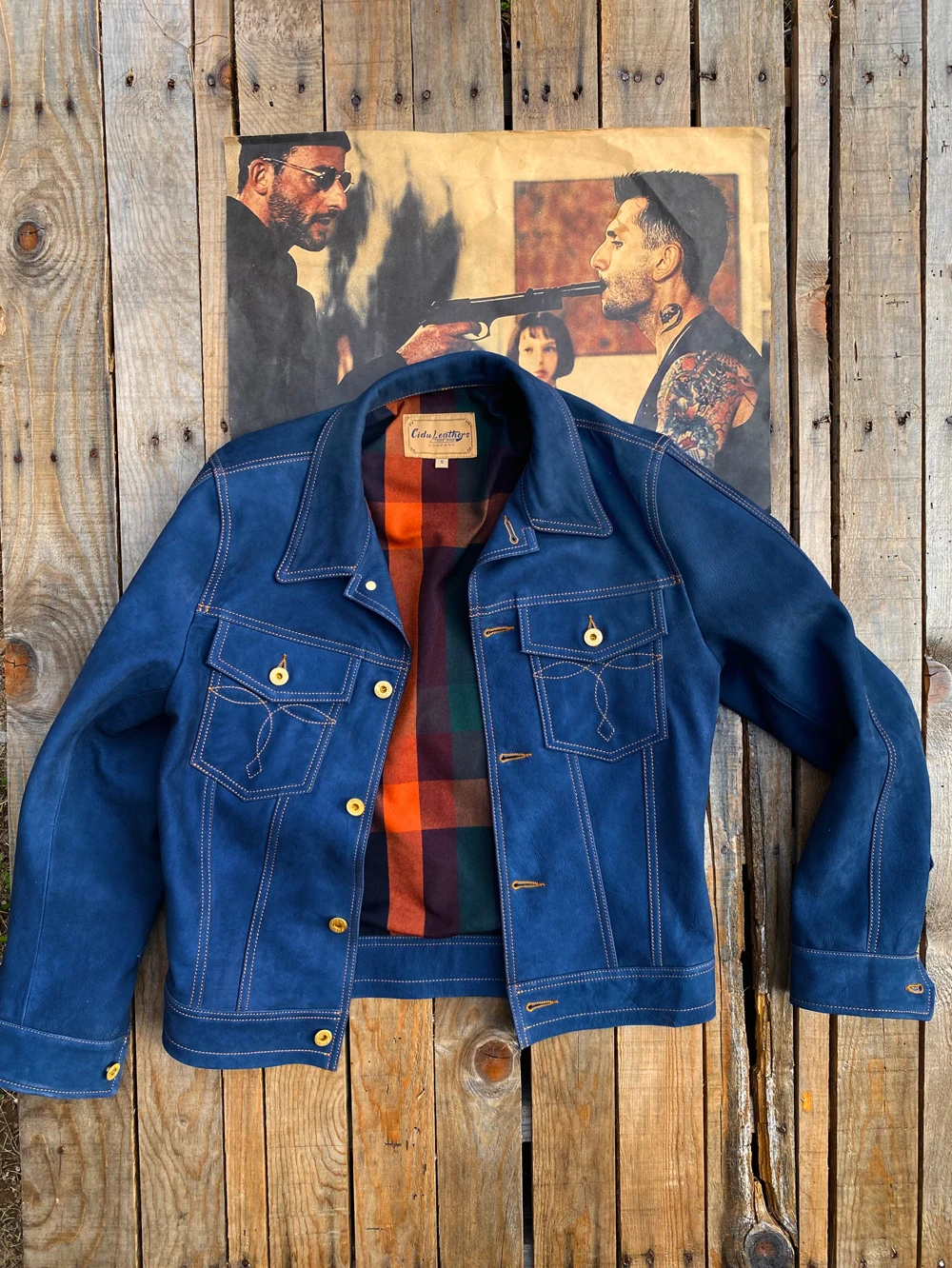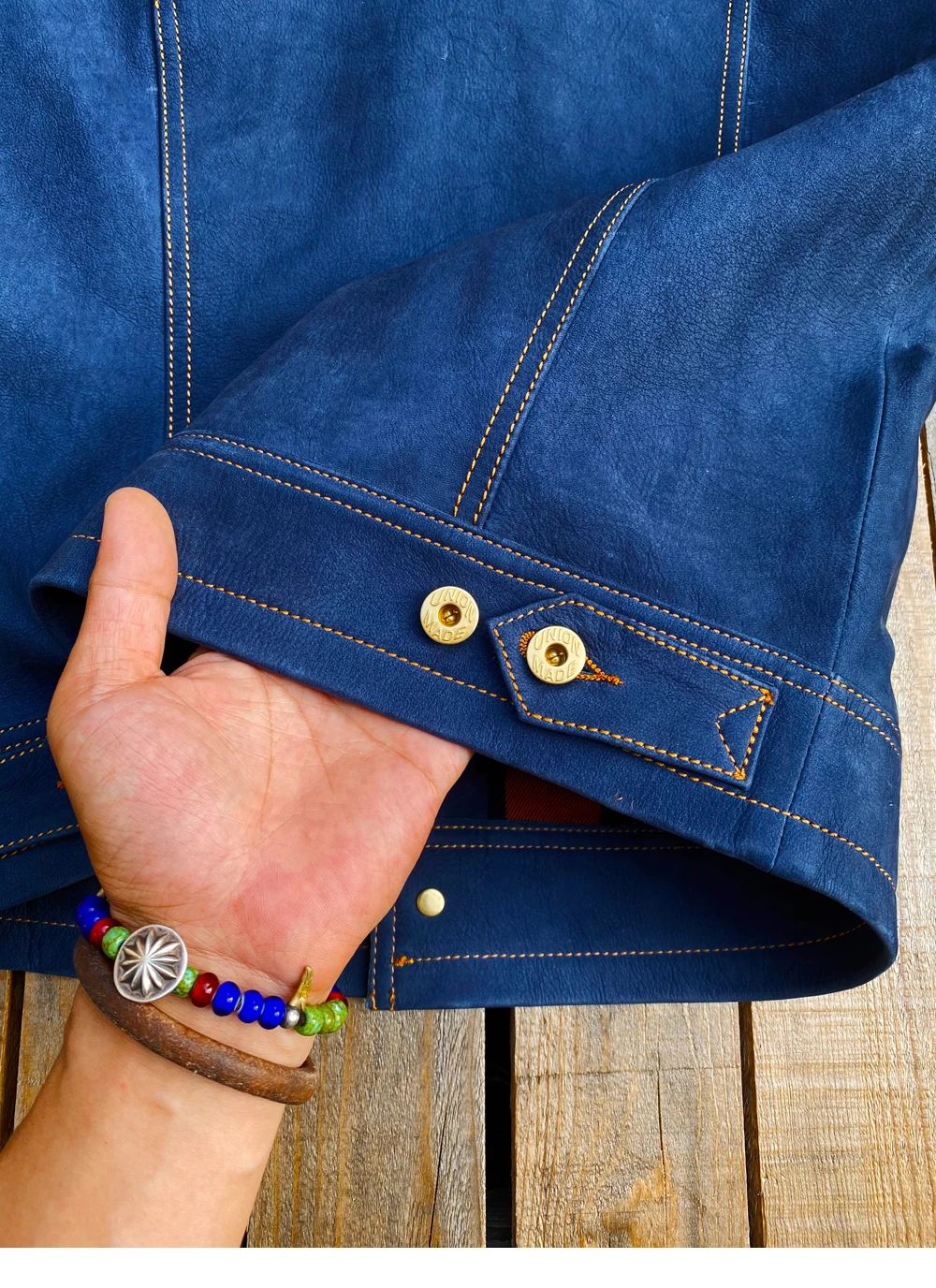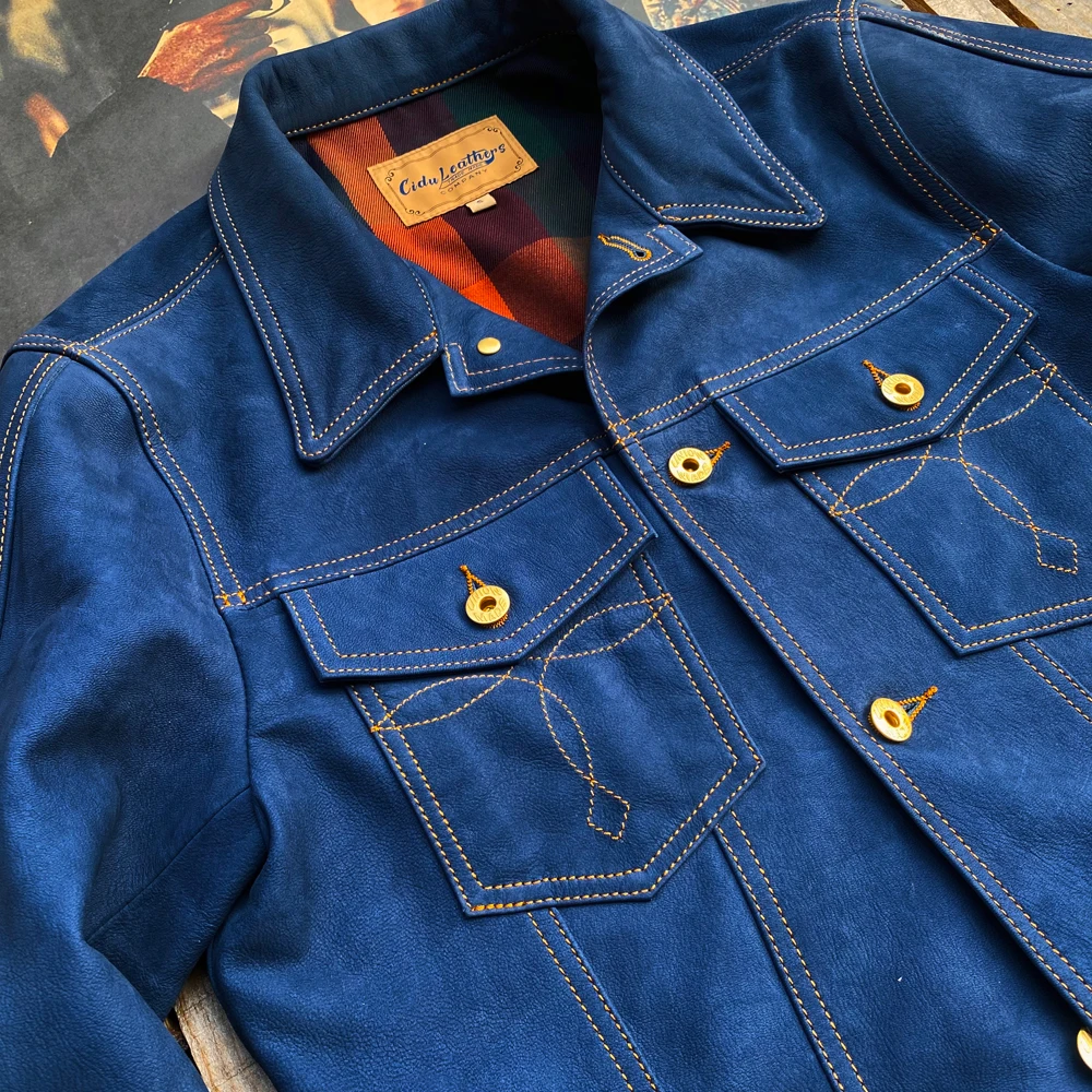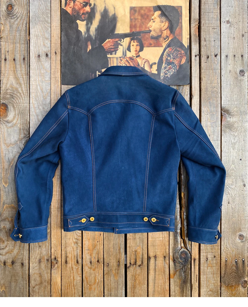 CDD1300 Cidu Азиатский размер супер высшее качество натуральный олень кожа Индиго окрашивание тонкий классический стильный Райдер Тип 3 Куртка