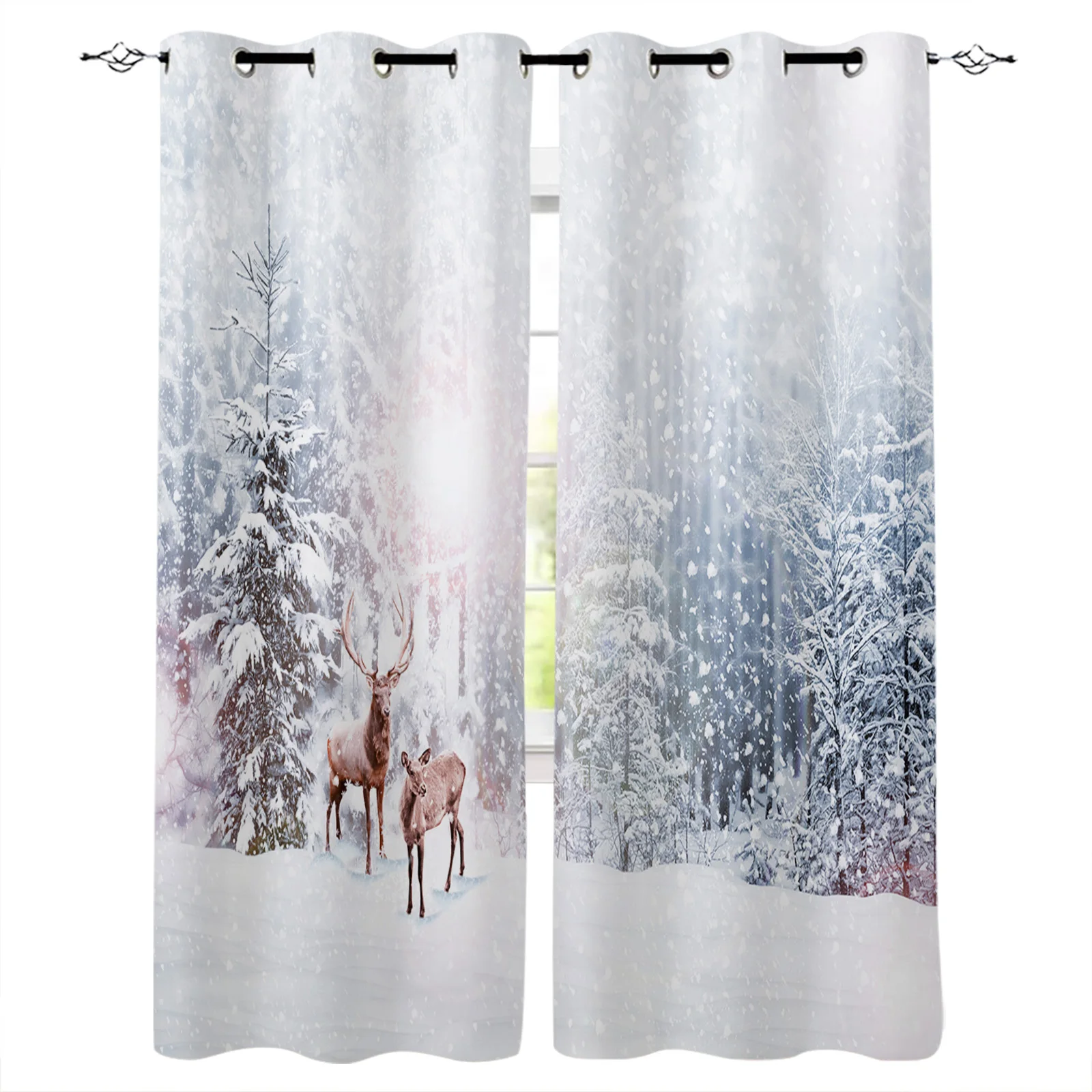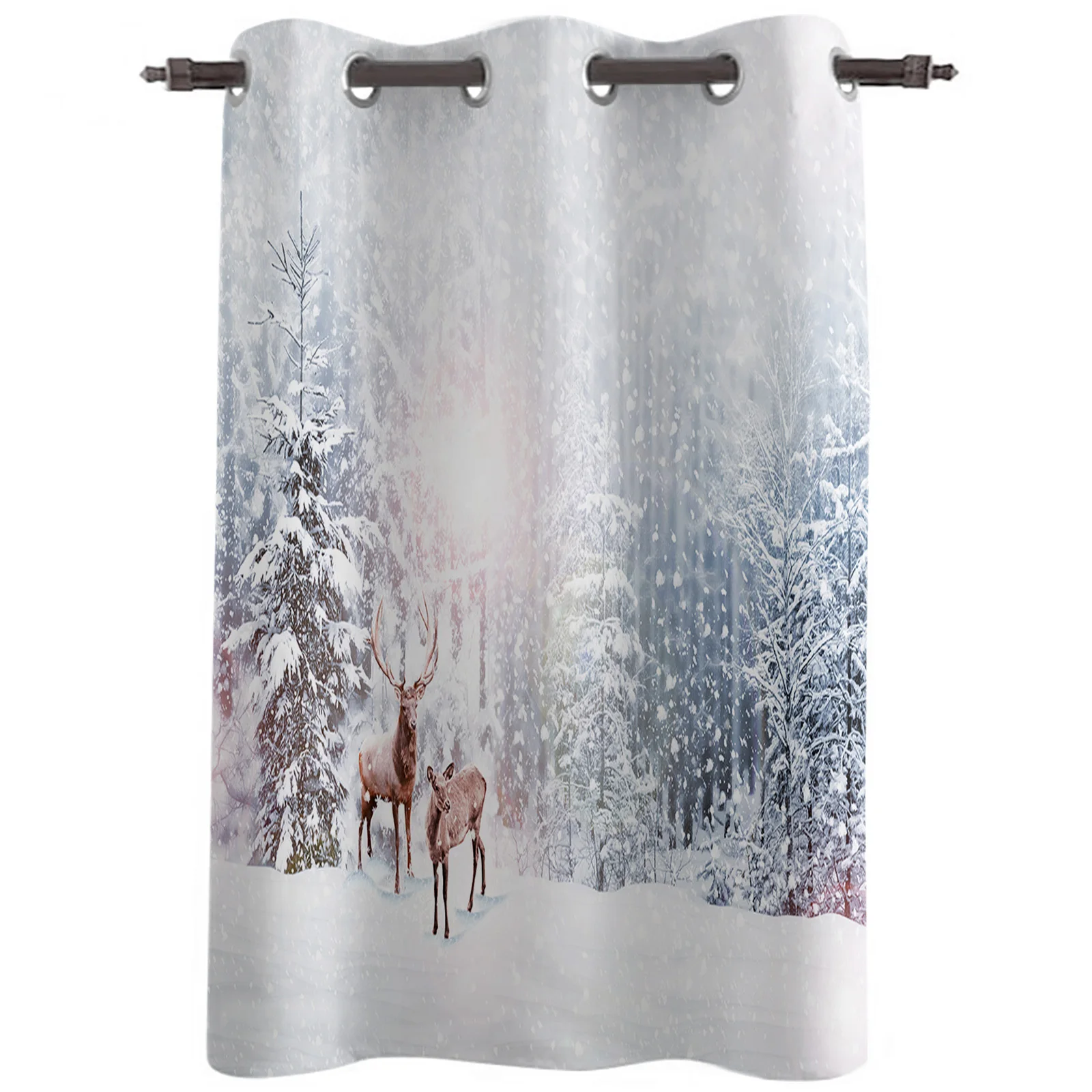 Снежные зимние рождественские занавески с изображением дерева, мороза, оленя, занавески для гостиной, детской спальни, оконные занавески, занавески, дверные занавески, декор s
