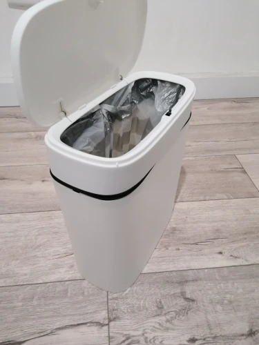Доставка около двух недель. Не очень качественная упаковка. Ведро лёгкое,пластиковое,всё таки цена завышенная.... Но именно такое узкое и с такой системой открывания ведро было нужно( обычное механическое, нажимая на крышку, полностью ее откидывает) В принципе сморится неплохо. Белое. Вписалось идеально.