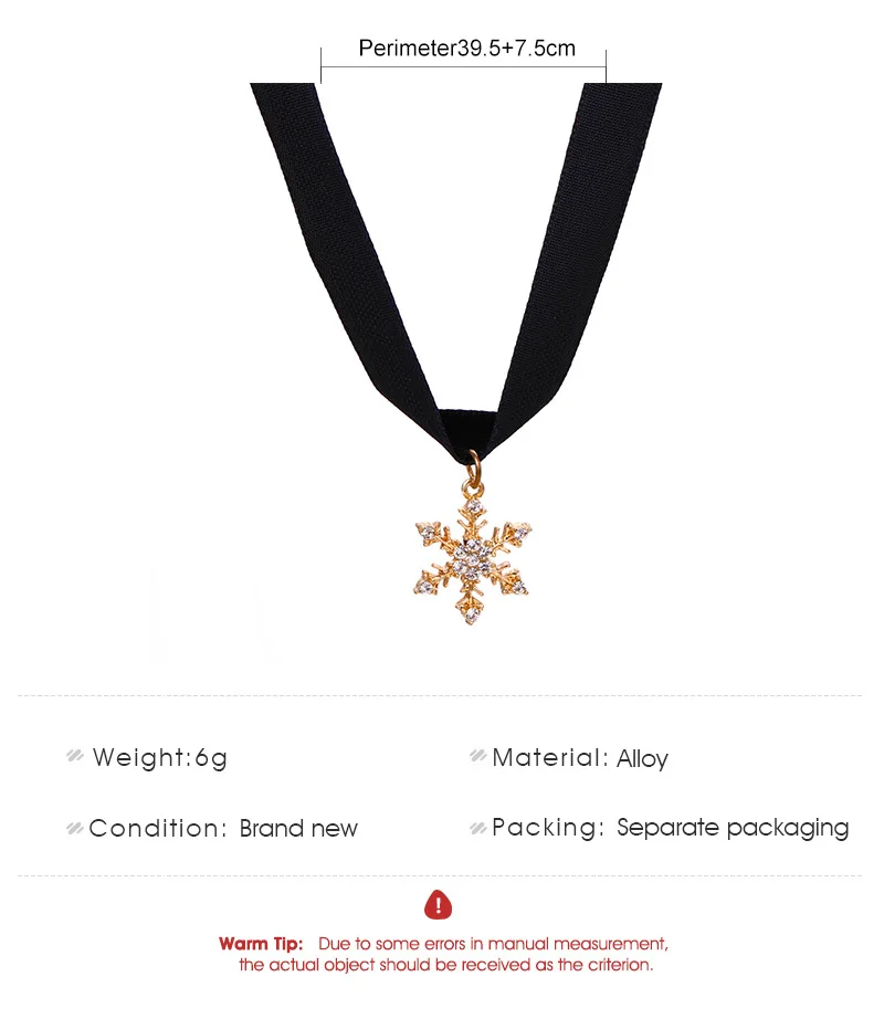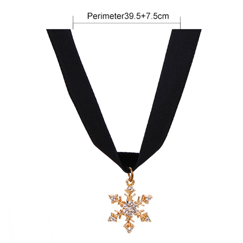 Женское бархатное ожерелье-чокер с подвеской в виде снежинки и сердца