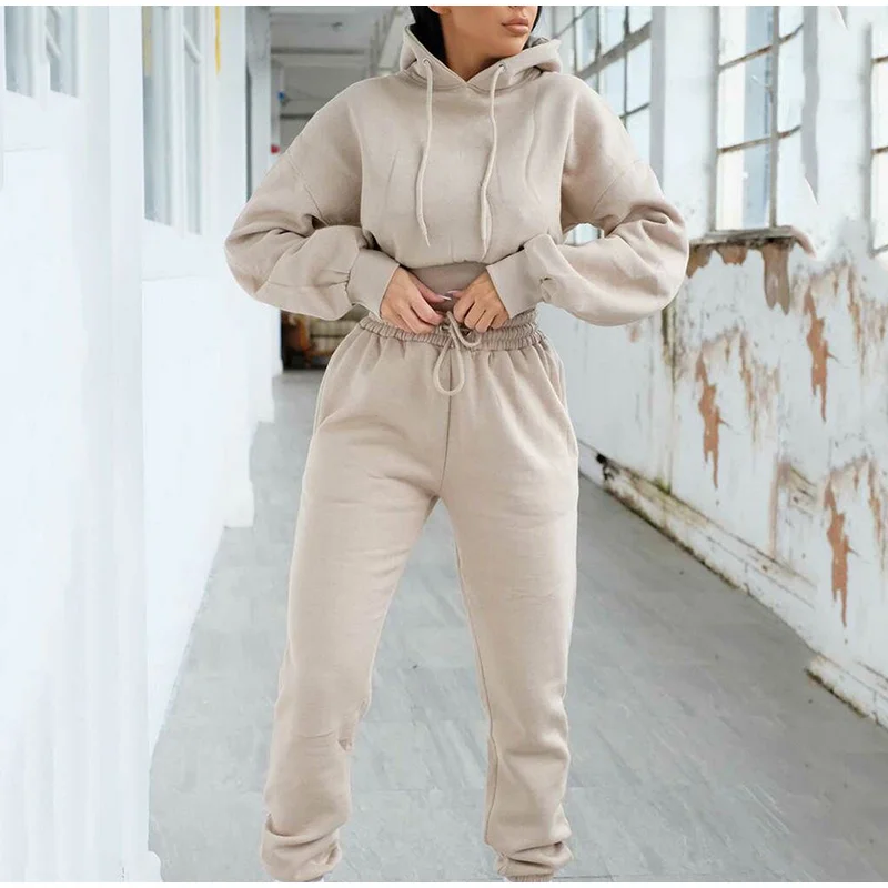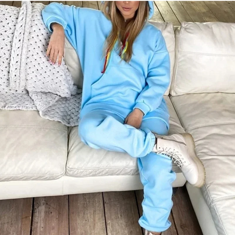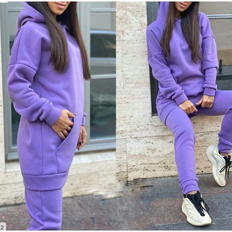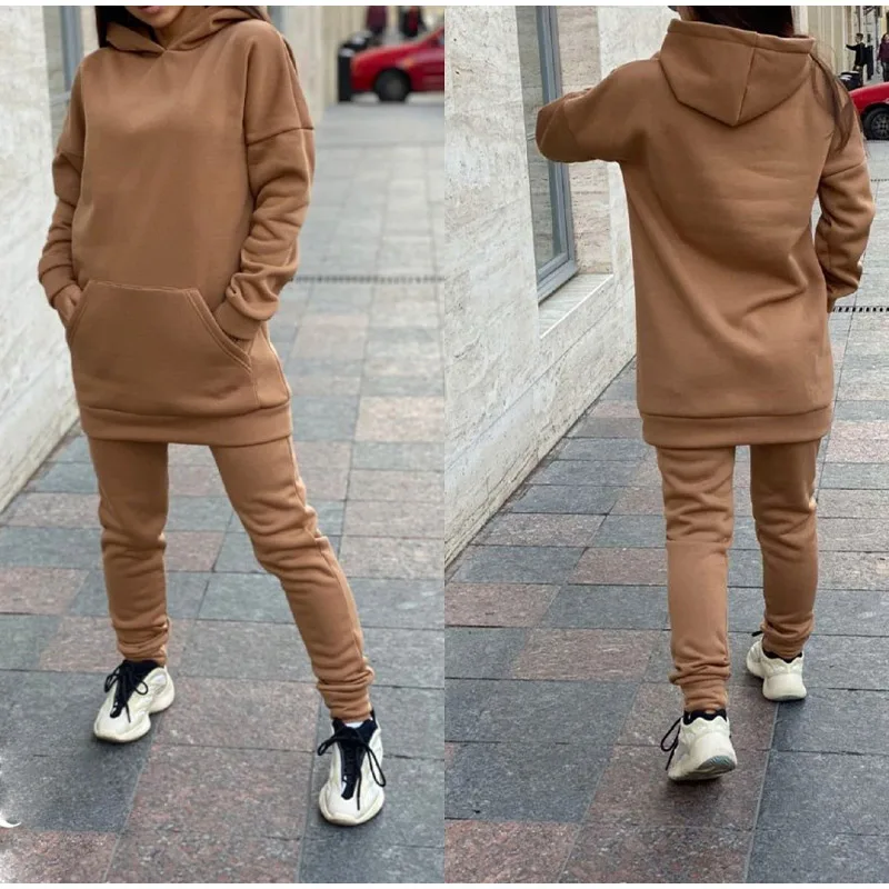 Женский флисовый пуловер с капюшоном, свитер и брюки, однотонный Повседневный Спортивный комплект из двух предметов, Осень-зима 2021