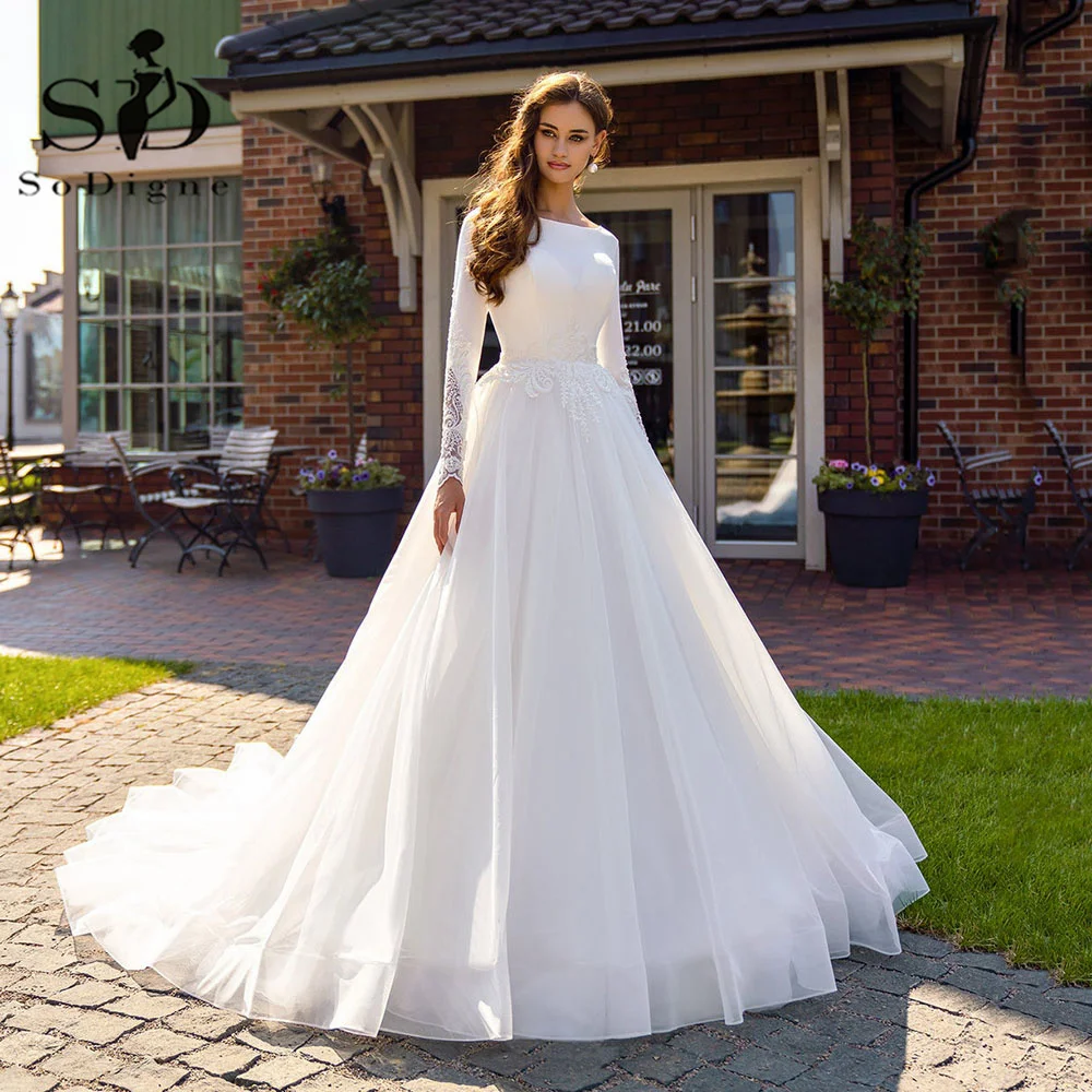 Атласное Бальное Платье soworthy, простое кружевное свадебное плать...