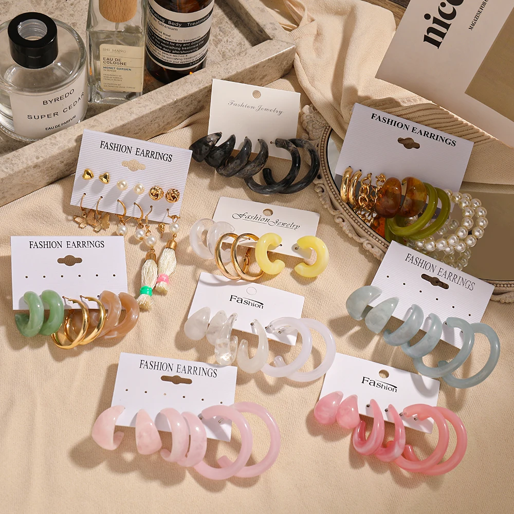 Новые корейские красочные акриловые винтажные геометрические серьги-кольца из полимерной смолы в стиле ретро для женщин и девочек ювелирные изделия для вечерние и путешествий подарки