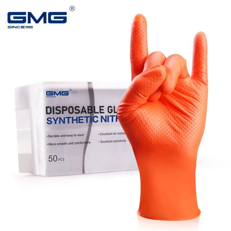 GMG синтетические нитриловые перчатки, апельсин, маслостойкие, водо...