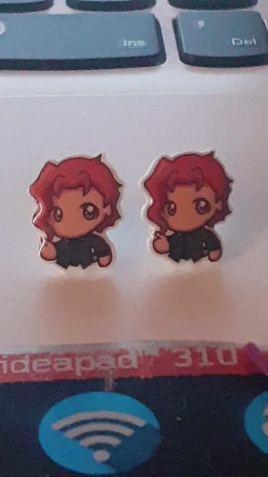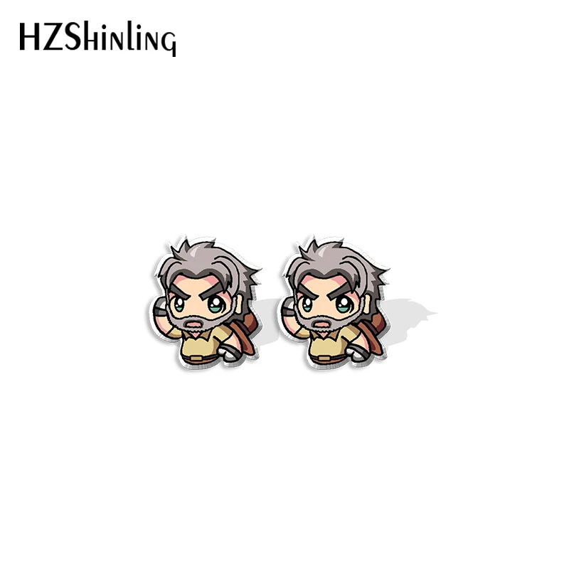 Серьги-гвоздики из эпоксидной смолы с изображением мультяшных аниме...