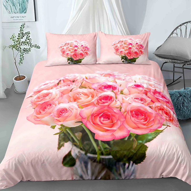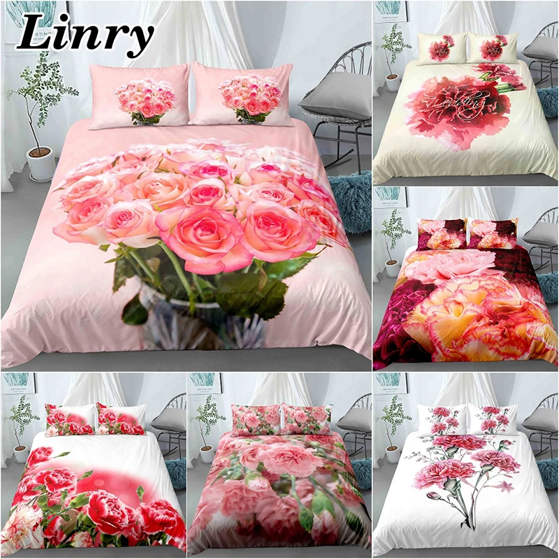 Романтический Комплект постельного белья с красными розовыми цветам...