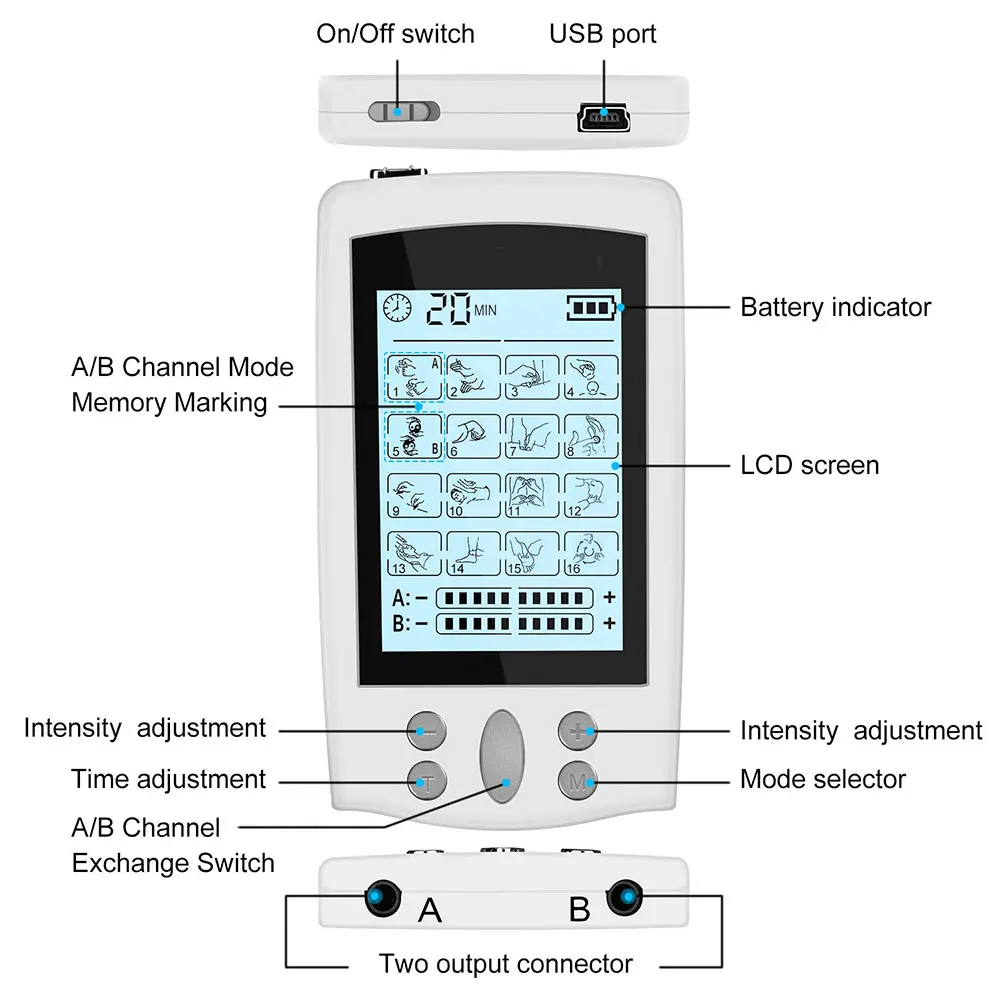 16 режимов, двойной выход, массаж тела, здоровье, Электрический фотостимулятор мышц, электронный импульс
