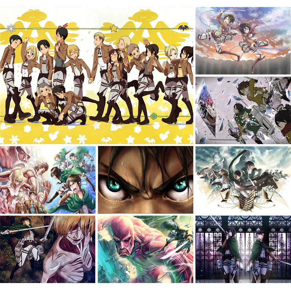 Винтажный постер из крафт-бумаги Атака Титанов, коллекция веера атласа, популярная японская аниме наклейка для подростков, подарок, домашняя декоративная стена