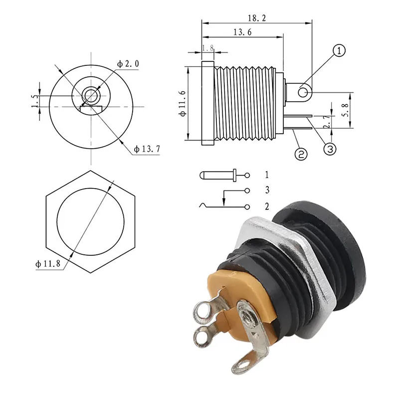 10 шт. разъемы постоянного тока 5,5x2,1 мм 3,5x1,3 мм штекер питания постоянного тока гнездо Гайка крепление панели адаптер постоянного тока Разъем 5,5*2,1