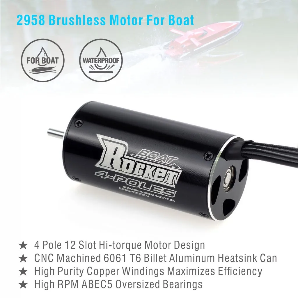 Бесщеточный двигатель Rocket 2958 3380KV 4200KV 4480KV с крышкой оболочки водяного охлаждения 3,175 мм вал для радиоуправляемого лодочного автомобиля 600-800 мм