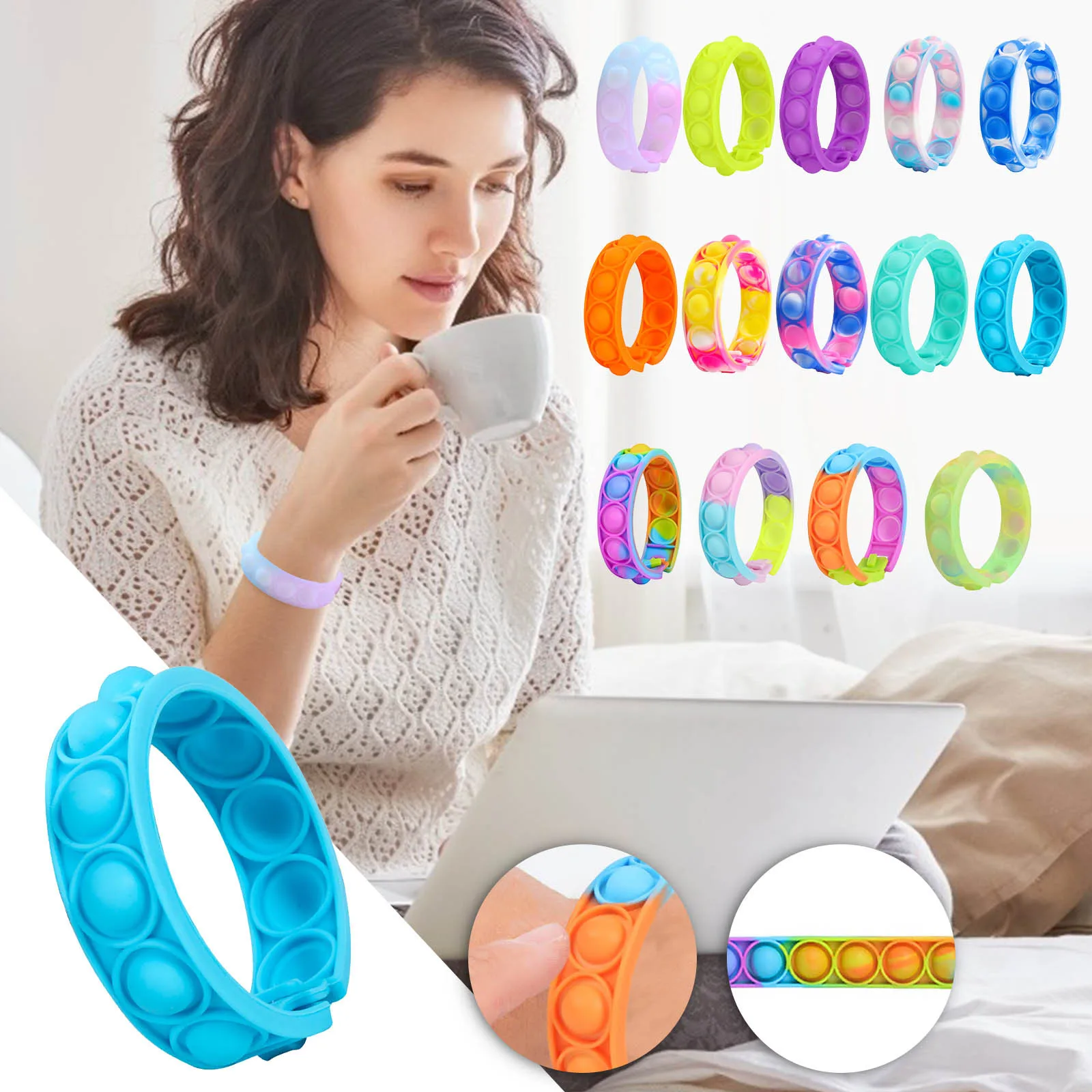 【Идеальный подарок для детей】Идеальный подарок для снятия стресса-отличный подарок для кого-то, который доставляет сюрпризы по любому случаю, а гибкий браслет диаметром не деформируется, высококачественный силиконовый браслет, отличная прочность, прочный и не деформируемый.