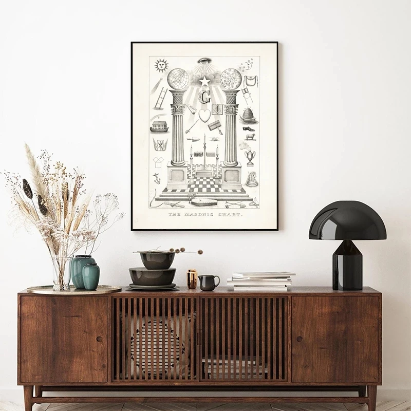 Винтажный масонский плакат Freemason, плакат, ручная роспись, эскиз Chessman, живопись, настенное искусство, Картина на холсте для гостиной, домашний декор