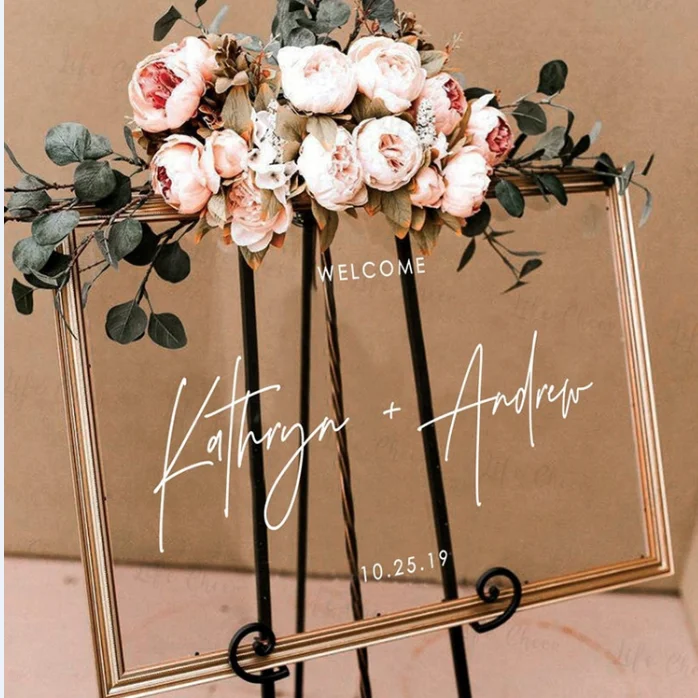 Виниловые наклейки, приветственная Свадебная вывеска, акриловые декоративные наклейки, зеркальная рамка, виниловый Свадебный постер, индивидуальный Декор