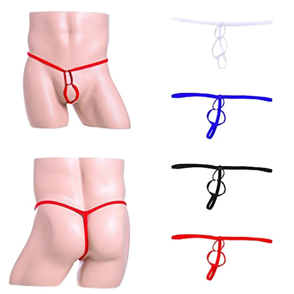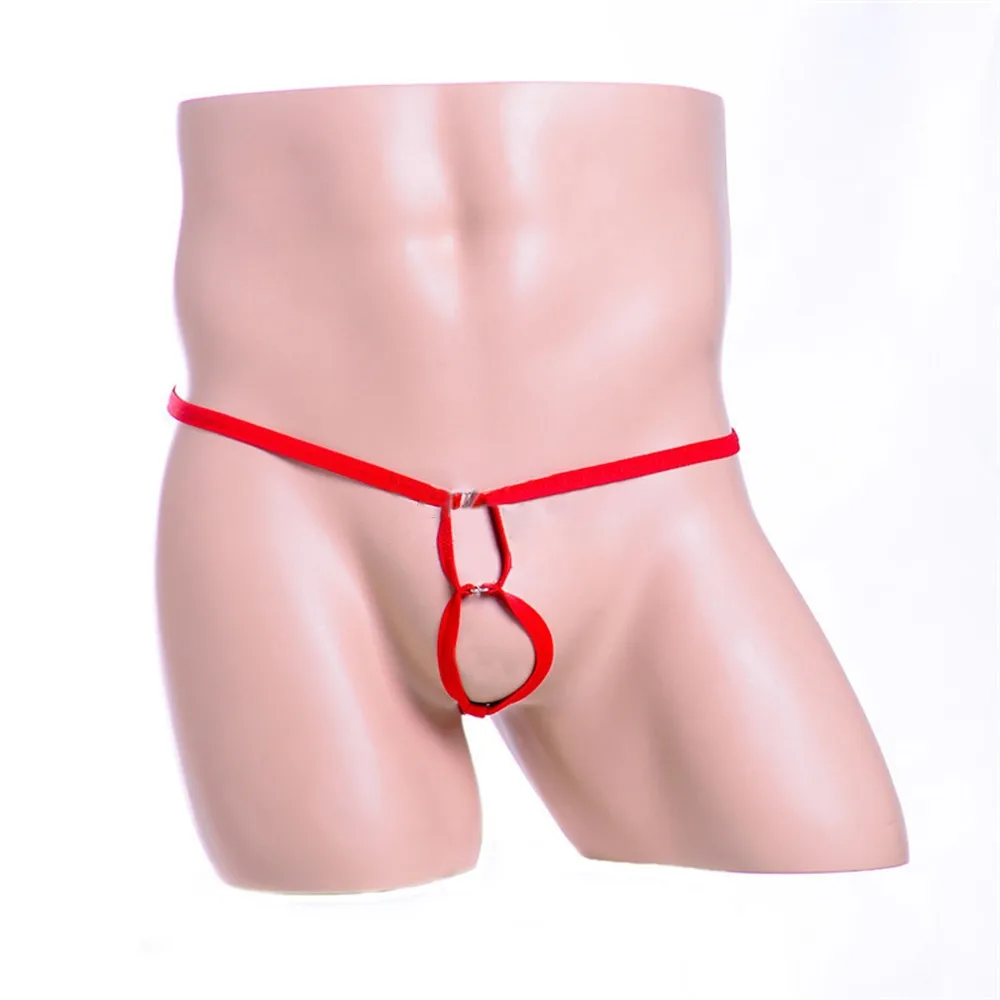 Стринги T-Back с круглым кольцом спереди, брифы, мужские трусы с отверстием для пениса, нижнее белье для геев, Сексуальное белье с открытой промежностью