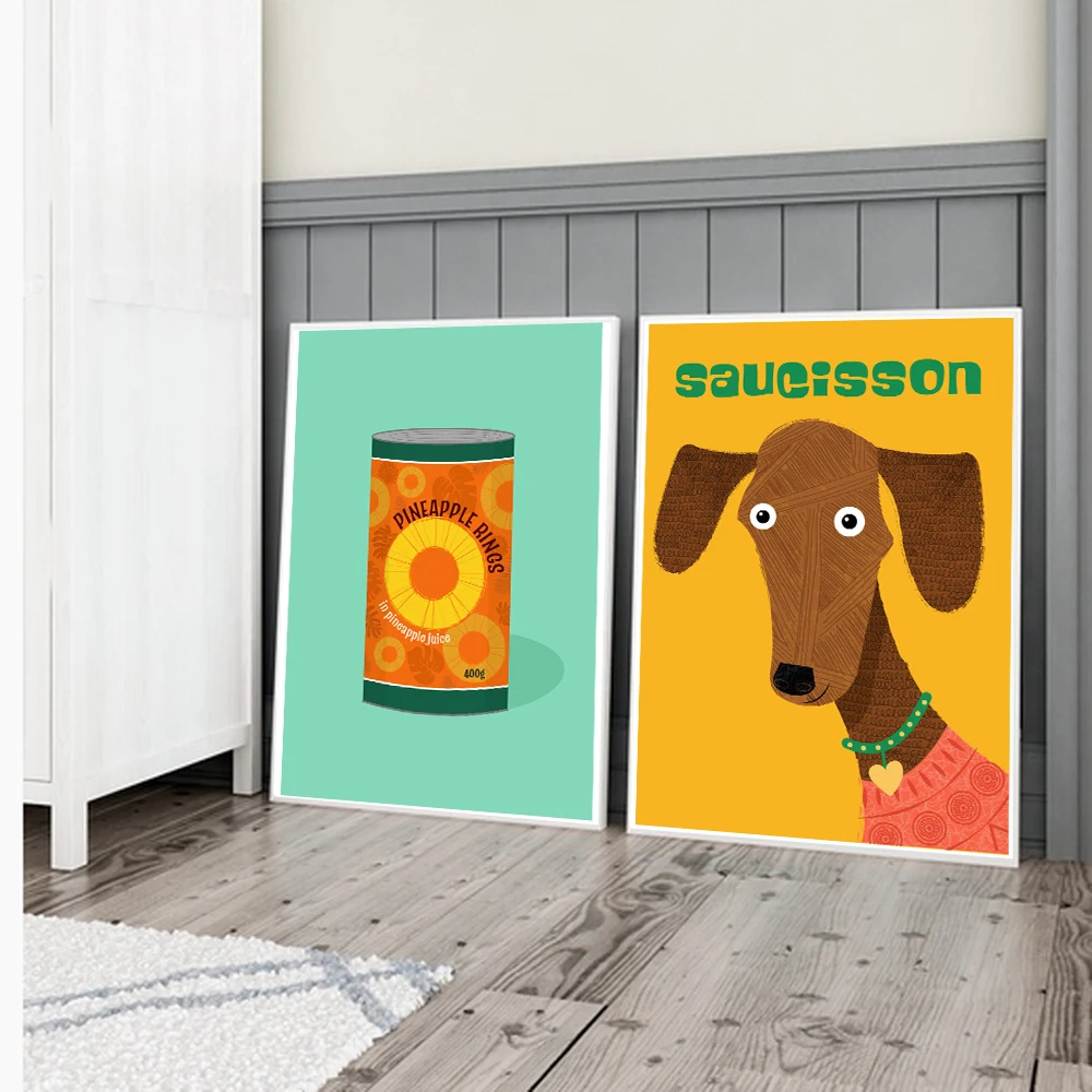 Постер джемпер колбаса и печать на холсте винтажная живопись Середина 60-х годов иллюстрация животное узор такса домашний декор