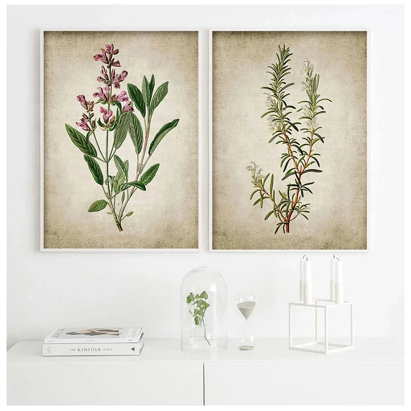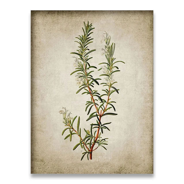 Винтажный постер на холсте с изображением трав, орегано, розмарин, шалфей, тимьян, Картина на холсте, ретро настенные картины, подарок для гостиной
