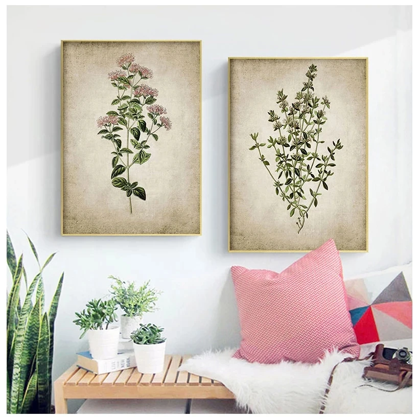 Винтажный постер с травами и принтом, Картина на холсте, орегано, р...