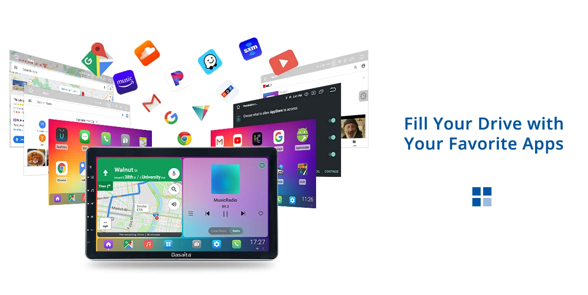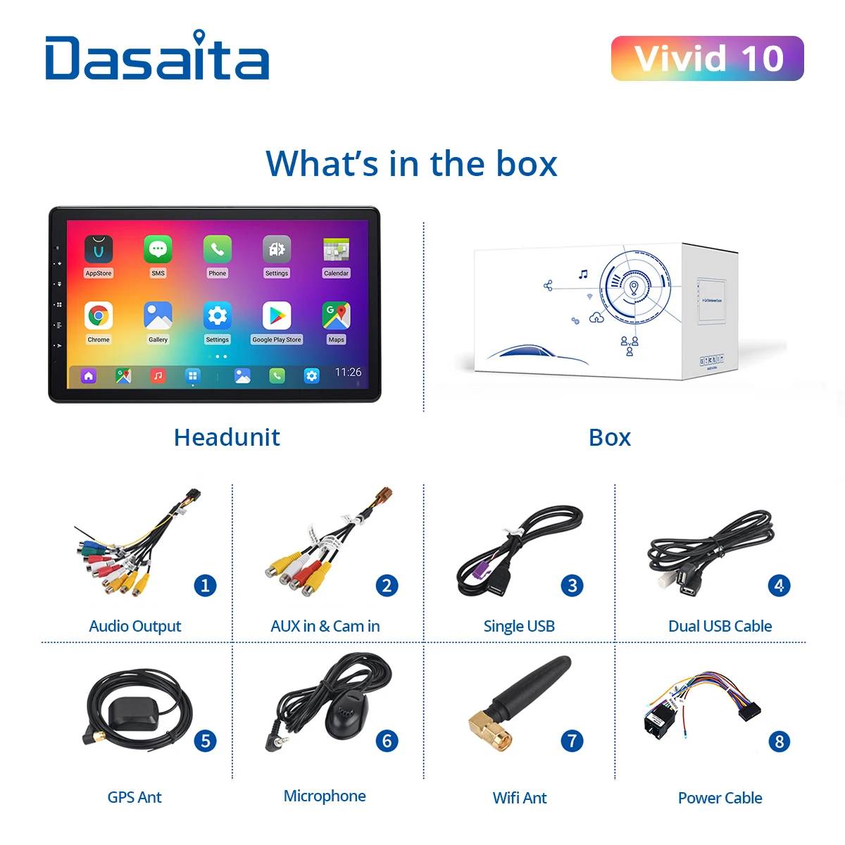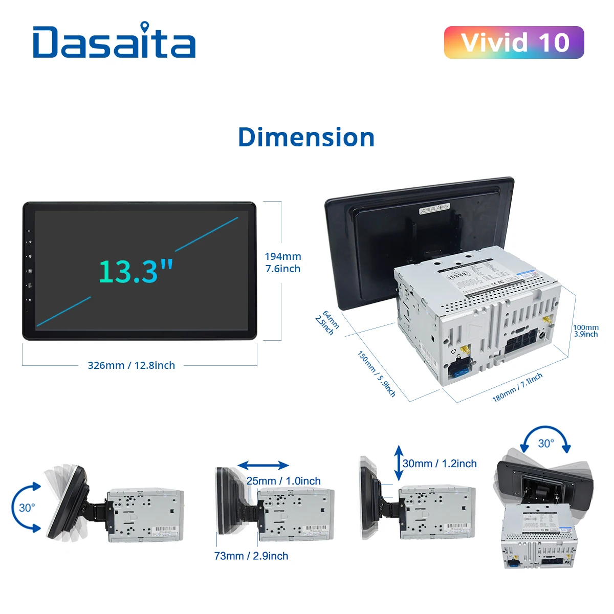 Автомобильный радиоприемник Dasaita, 13,3 дюйма, 2 Din, для универсального Авторадио с Apple Carplay, Android 10, 2K, 1920*1080, GPS-навигация, стерео